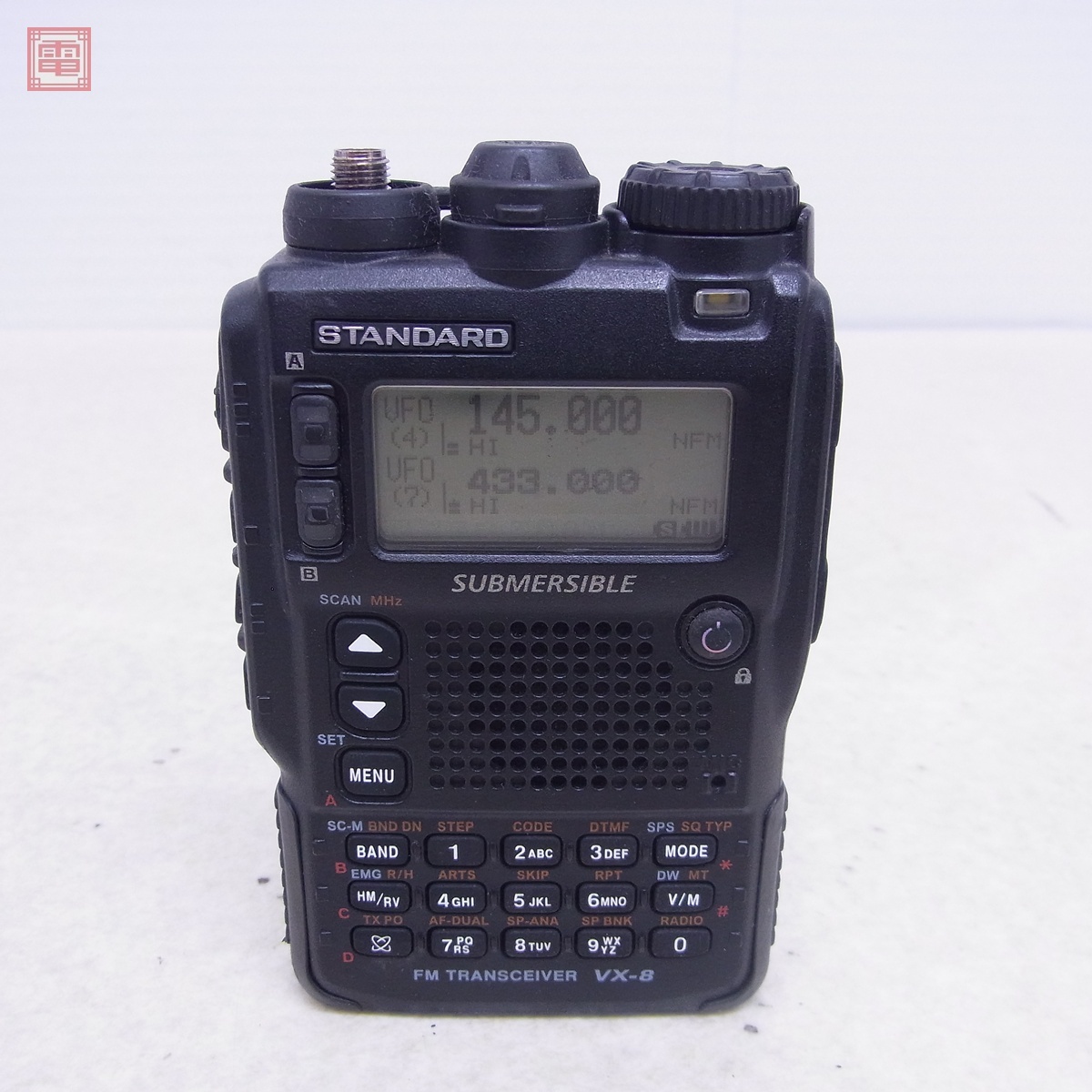 ヤエス VX-8 ハンディ無線機 50/144/430MHz 充電器付 八重洲 バーテックススタンダード ■<出品物> ・本体 ・リチウムイオンバッテリー(FNB-101LI) ・ACアダプタ(SAD-24B/未開封) ・アンテナ(COMET CMY-AIR1) ■<状態> ・手持ちの無線機を用いて確認した所、送受信できました。 ・オールリセット済みです。 ・中古品の為キズ、汚れ等はご容赦ください。 ・タバコ臭はありません。 ■写真のものが全てです。付属物の有無や状態については写真からご判断ください。 ■付属物については細かいチェックはしておりませんので、万が一、欠品があったり余計な物が入っていたとしてもご了承ください。 ■商品到着後、当店の保証期間中は、商品及び箱や取説、付属品などを1つでも廃棄や破損をしないようにお願い致します。廃棄や破損をした場合、商品に問題があった場合でも対応や返金などの対処ができなくなります。 ■商品によりますが、発売されてから10年以上経過している中古品である事をご理解頂いた上でご入札をお願い致します。なお、新品や美品、また特記事項がある場合は別途明記します。 | |||