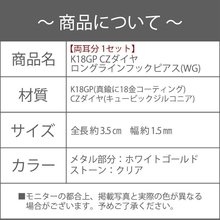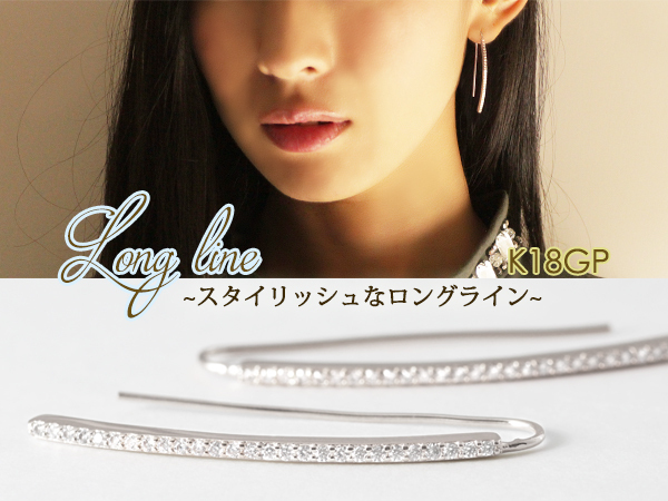 ピアス レディース ロング フック シルバー 18金 18kコーティング ホワイトゴールド シンプル / K18GP CZダイヤ ロングラインフックピアス