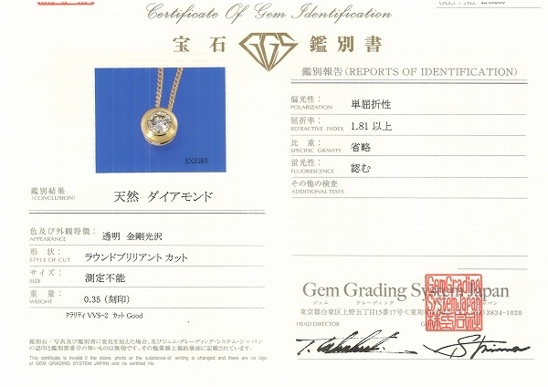 | K18YG ネックレス ダイヤ 0.35 VVS2 鑑別書 総重量約2.6g 約45cm 中古 美品 送料無料 | |