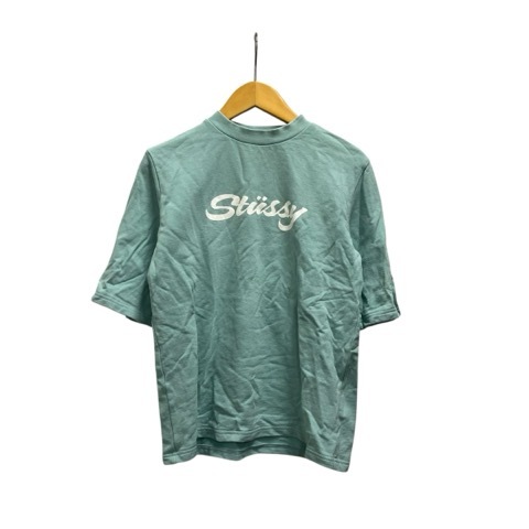 ステューシー STUSSY Tシャツ 半袖 クルーネック ロゴプリント コットン M ミントグリーン 白 ホワイト レディース