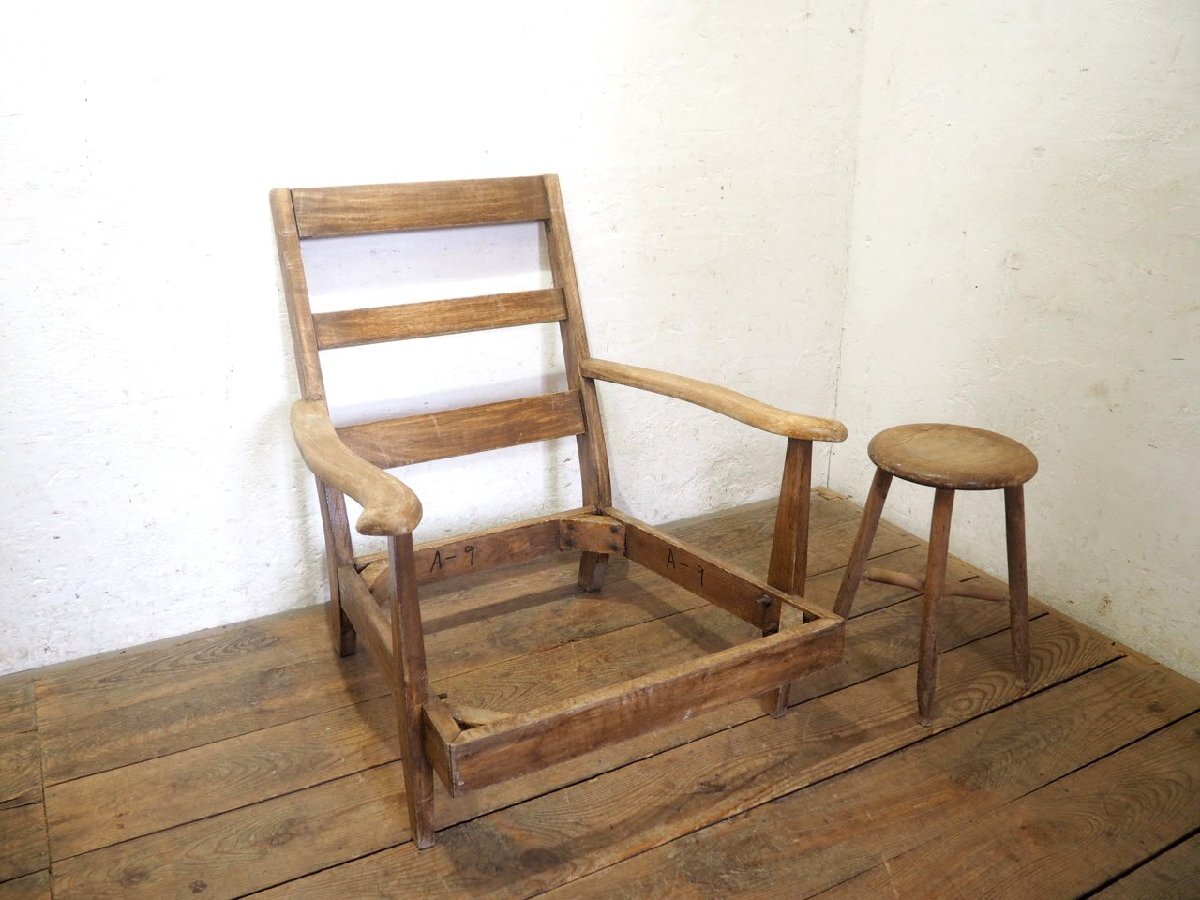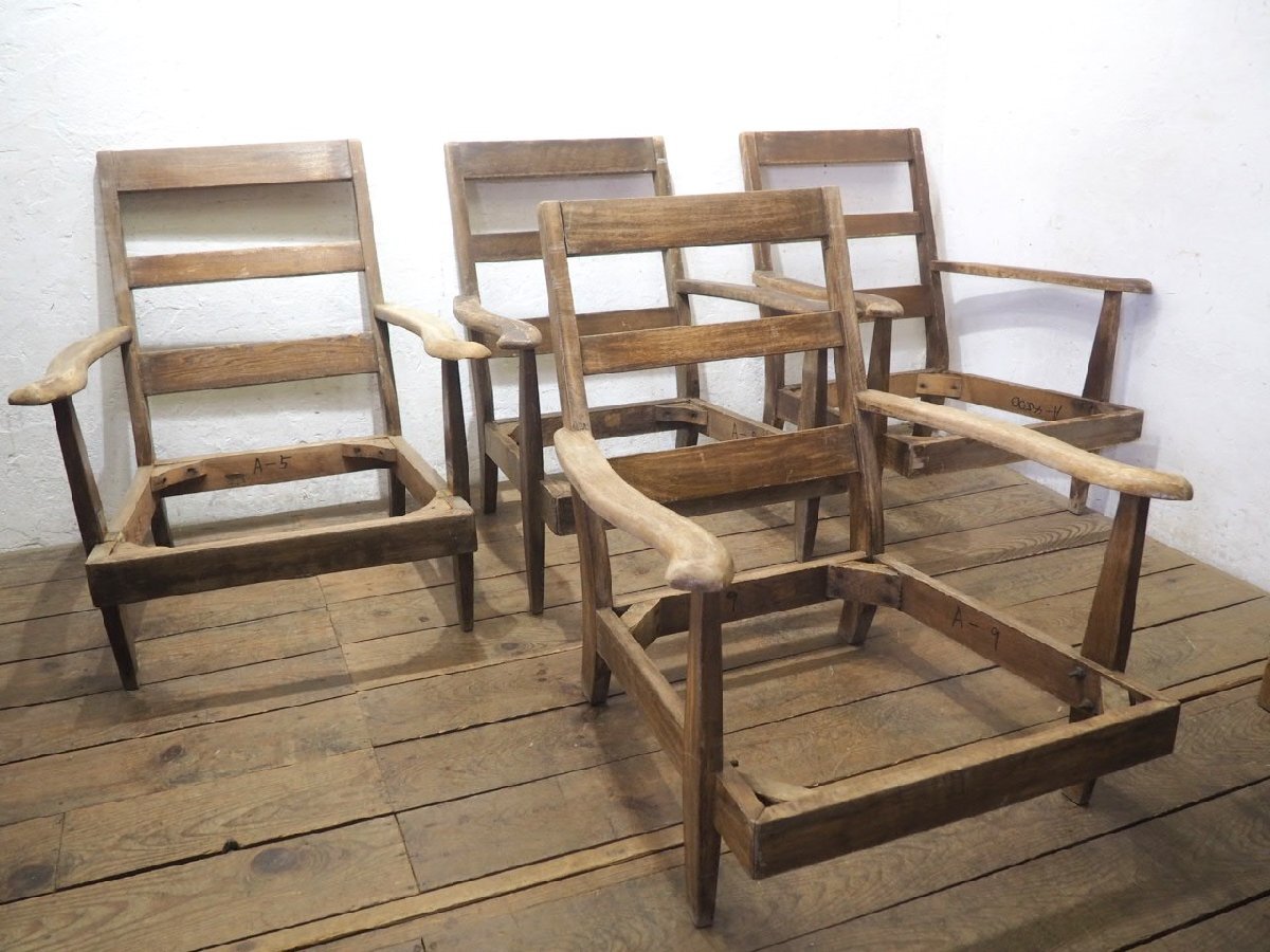 タU0084◆④ビンテージ◆レトロな古い木製チェアのフレームのみ◆椅子 イス ソファ リメイク DIY カフェ リビング インテリアQ庭