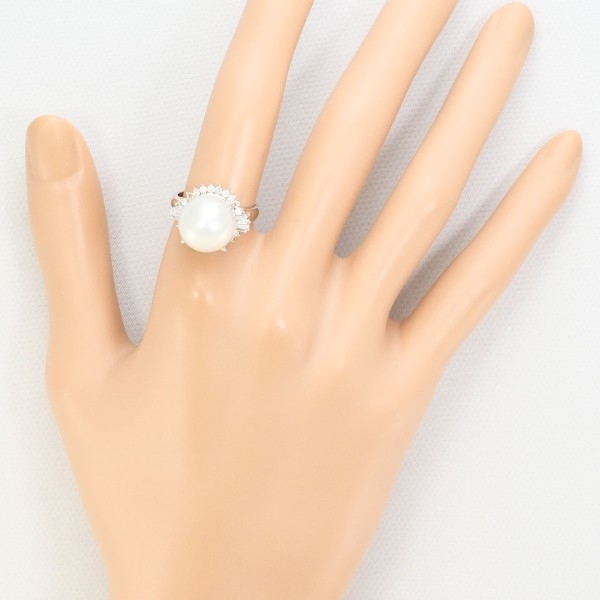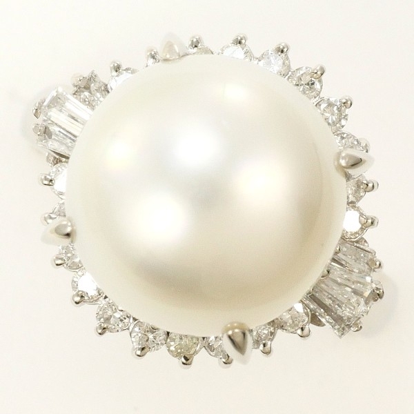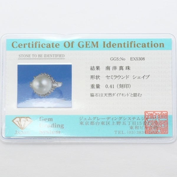 PT900 リング 指輪 11号 南洋真珠 約12mm ダイヤ 0.41 カード鑑別書 総重量約9.6g 中古 美品 送料無料 | |
