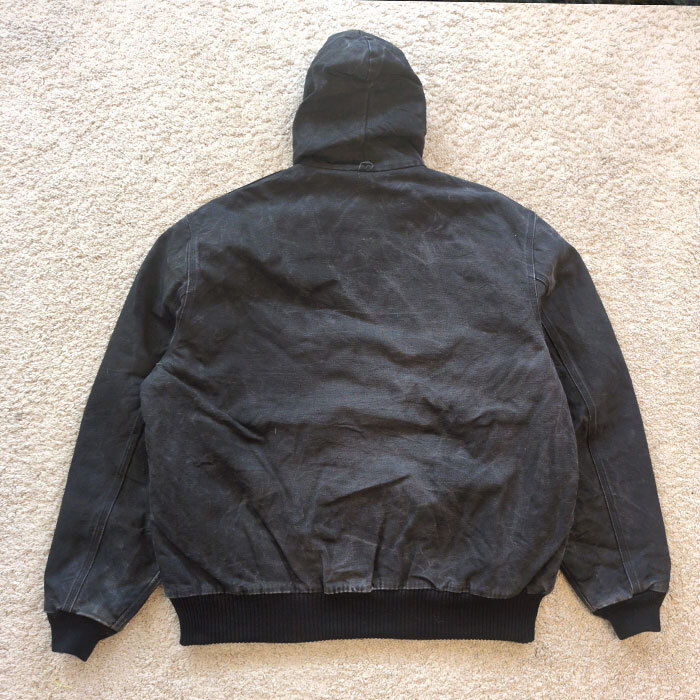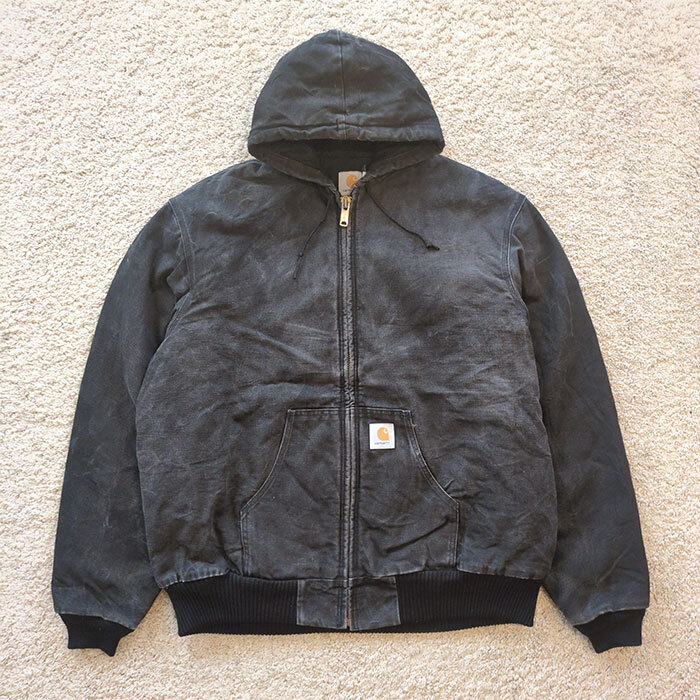 アクティブジャケット サイズ表記 なし 実寸からXL-XXL およそのサイズ 肩幅(約58m) 身幅(約73cm) 袖丈(約73cm) 着丈(約75cm) カーハートアクティブパーカー90年代となります。 気になるダメージ等は画像に添付しておりますが、着用に関して問題のあるダメージや汚れは無いです。 90sらしいブラックダックのフェード感が出ており、やはり現行のダック地では出ない雰囲気です。 古いモデルの割には傷みやすい袖等にもダメージが無いのでおすすめです。 この位のフェード感だと袖等にダメージがあるのですが、全体的な雰囲気の割にはダメージがほぼないのでおすすめです。 。 その他、使用感や擦れ、汚れ等の細かいダメージはありますが、着用に致命的なダメージはありません。 古着となりますので、ご理解の上、神経質な方はご入札を控えて頂きます様お願い致します。 |