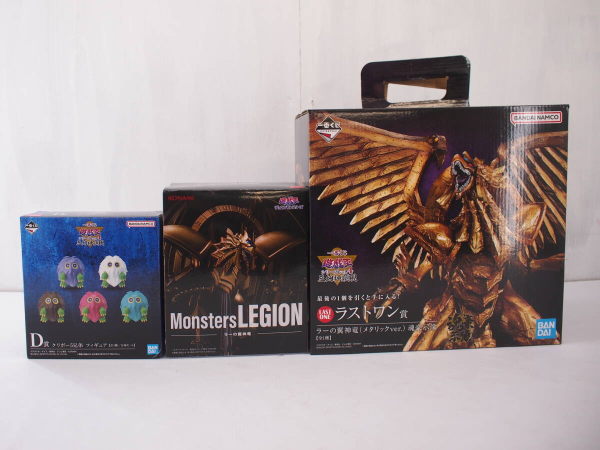 【 商品名 】 一番くじ 遊戯王 三幻神顕現 ラストワン ラーの翼神竜 他 【 コンディション 】 中古品です。 ラストワン賞は開封品で、残りの2個は未開封品です。 開封品も目立ったキズ、汚れはみられず、中古品としては良好な状態だと思います。 箱にイタミがあります。 画像のものが全てです。 現状品のお渡しとなりますので、付属品の欠品等ありましても対応致しかねます。 以上の状態をご理解の上でご入札をお願い致します。 【 発送について 】 ヤマト運輸の運賃元払いのみの取扱いとなります。 ※その他の発送方法には対応できません。落札後に指定されても対応致しかねます。 手渡し、引取などにも対応致しかねます。ご承知の上でご参加下さい。