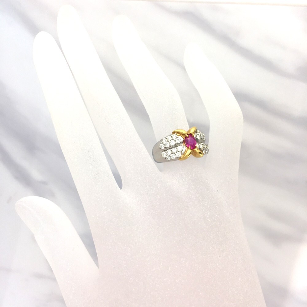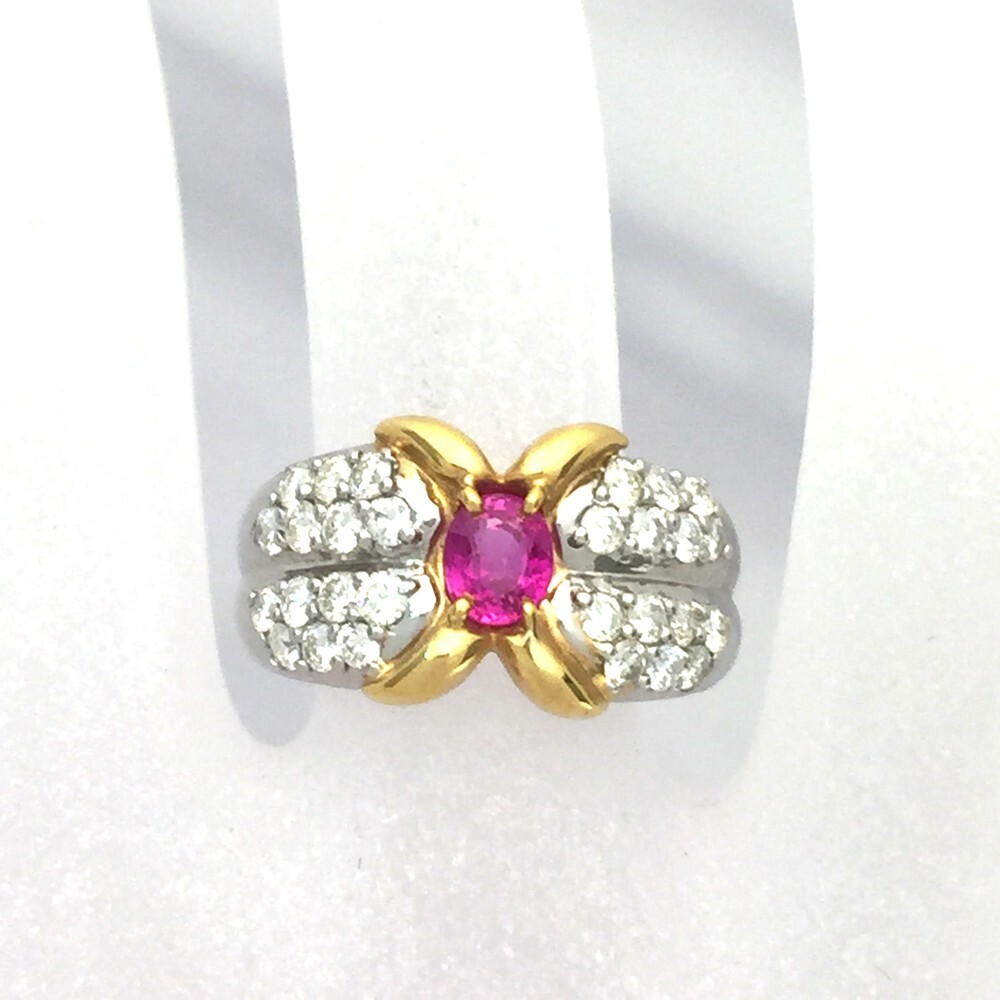 商品名 | 【中古】K18/Pt900 ピンクサファイヤ ダイヤ リング 指輪 レディース PS0.66ct D0.94ct 10.4g 13号 |