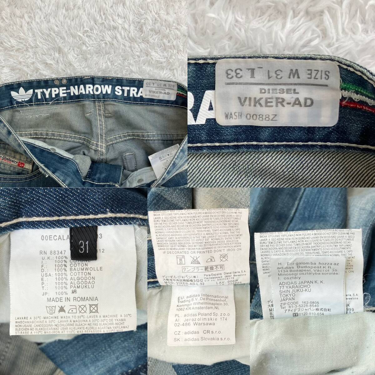 大人気コラボ◎!希少31(L)!ディーゼル DIESEL アディダス adidas VIKER-AD デニム パンツ ジーンズ 別注 ロゴ メンズ インディゴ ブルー 青