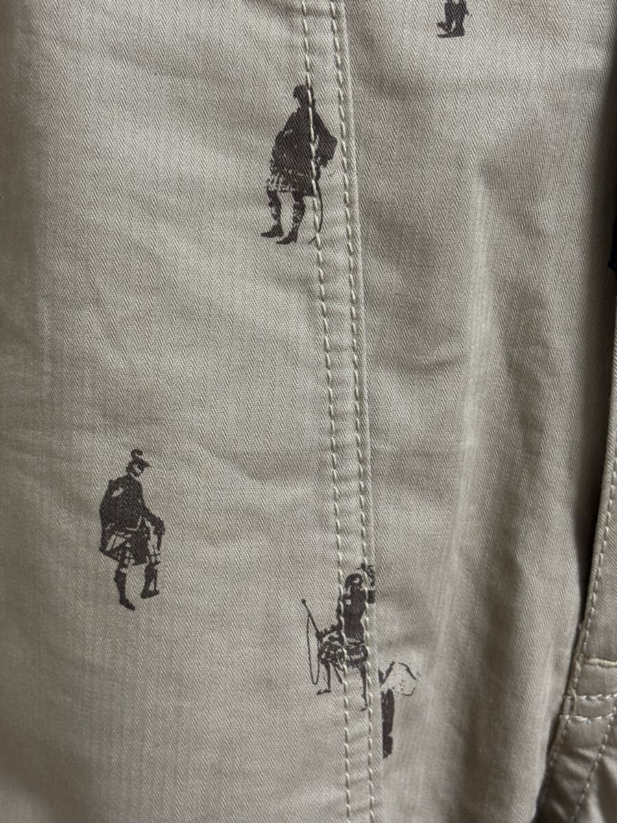 一見するとゴルフパンツのようですが、実はサムライのシルエットがプリントされたユニークなデザインです。