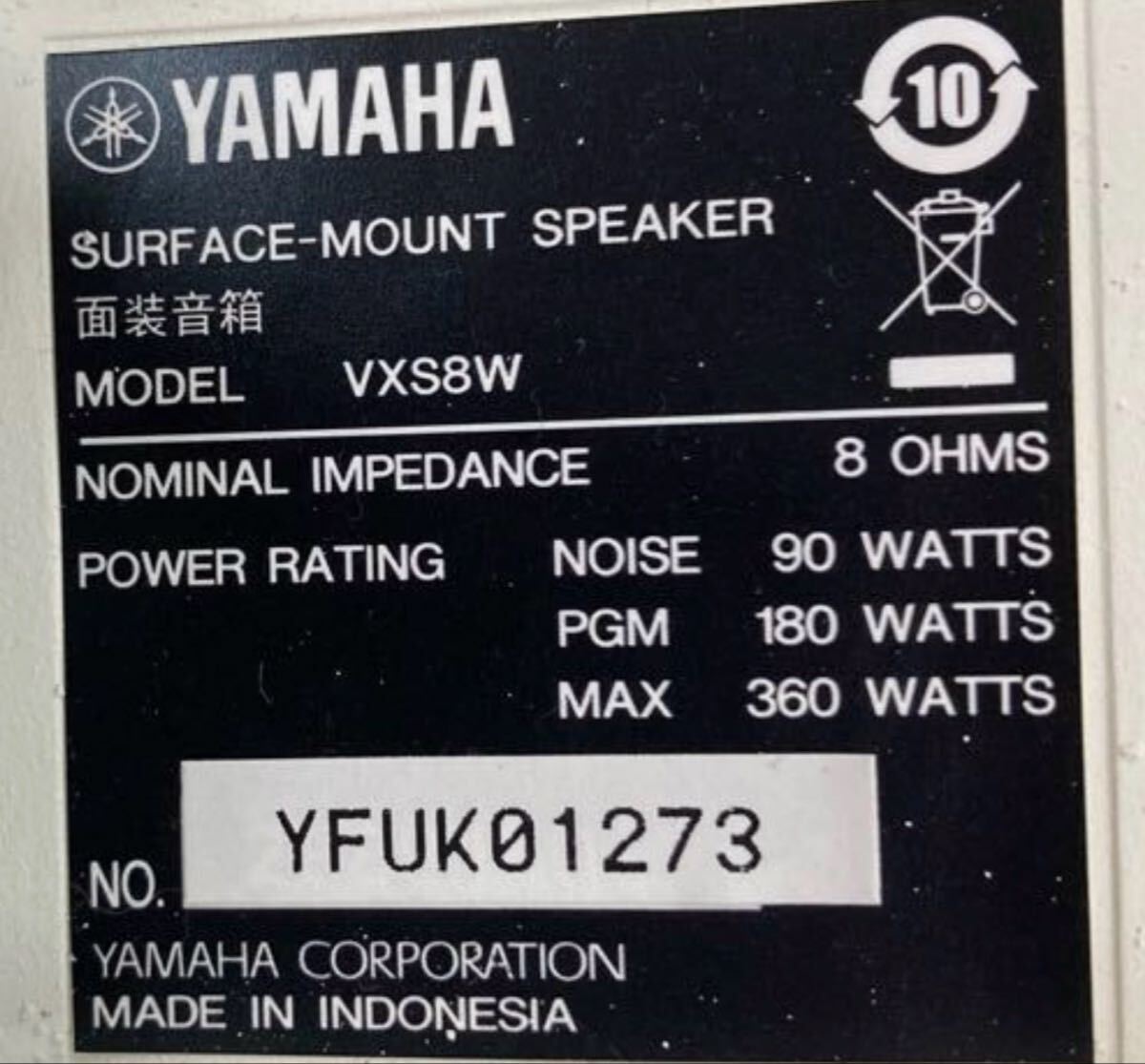 YAMAHA スピーカー ペア VXS8W SURFACE-MOUNT SPEAKER ホワイト ヤマハ 天吊 天井 壁 中古