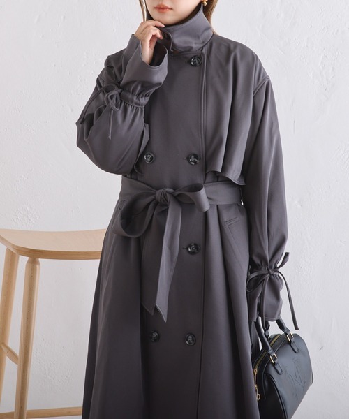 キーワード:トレンチコート コート レディース ロング丈 無地 秋 冬