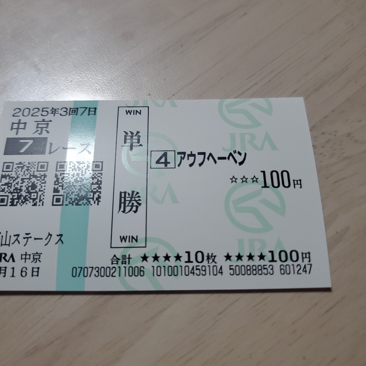 現地で買いました高山ステークスアウフヘーベンです。