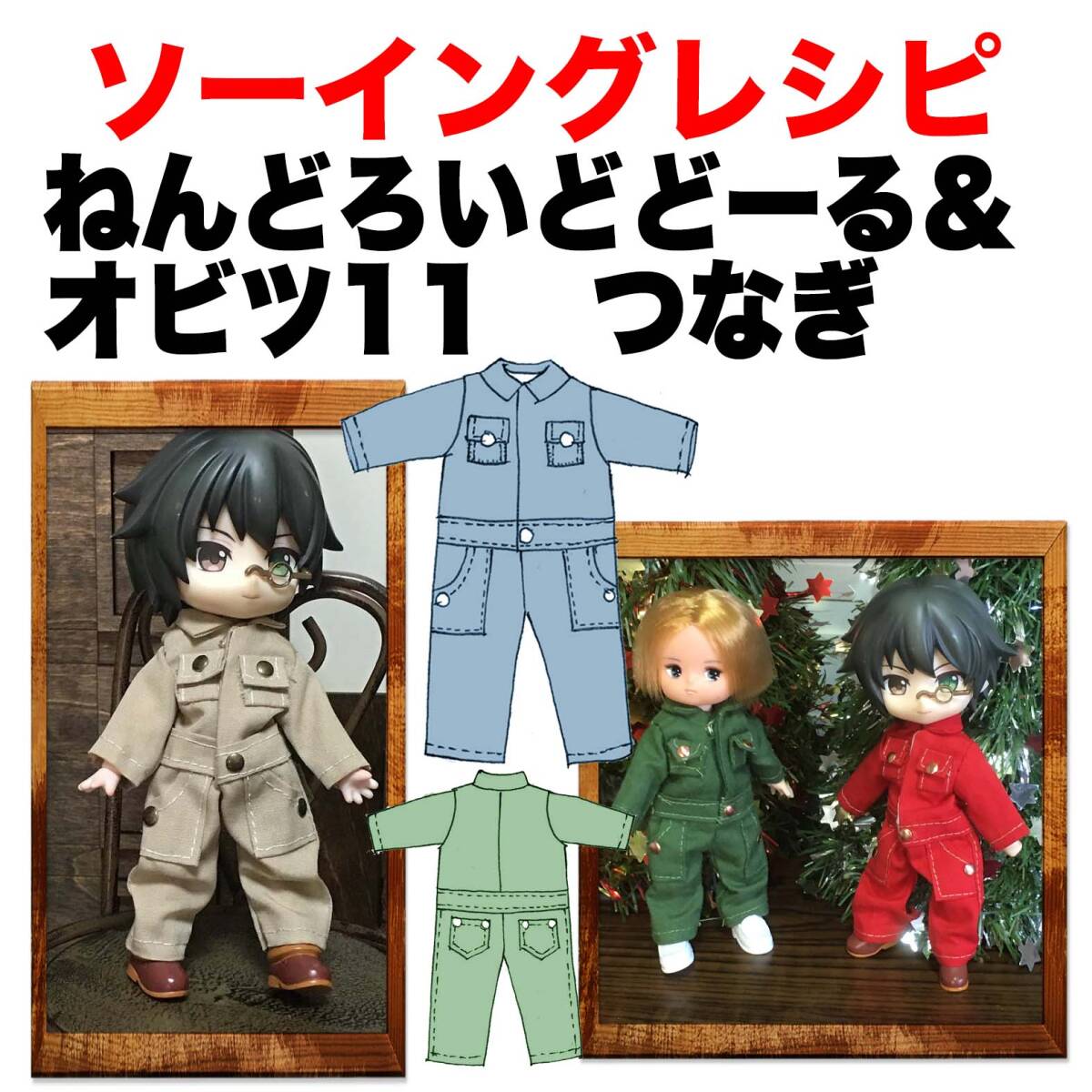ねんどろいどどーる&オビツ 11<つなぎ>ソーイングレシピ型紙と作り方です。