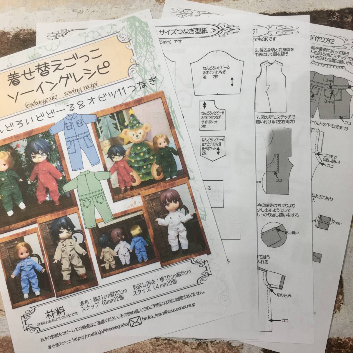 ねんどろいどどーる&オビツ11<つなぎ>ソーイングレシピ型紙と作り方難易度★★★★