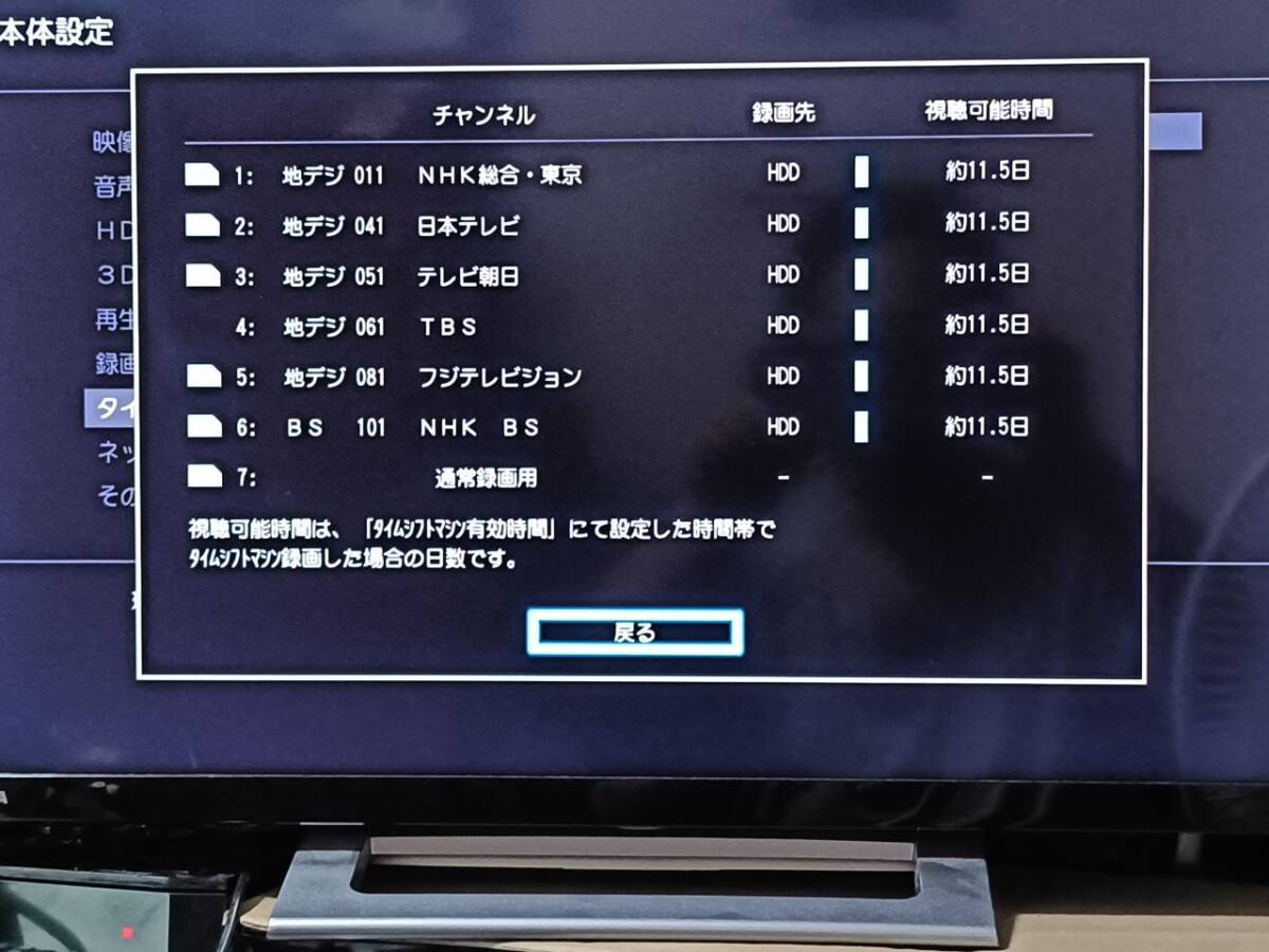 画像のように3番組同時録画又は7番組同時に、最大1日24時間、約11.5日間(最低画質の場合)タイムシフト録画することが出来ます。