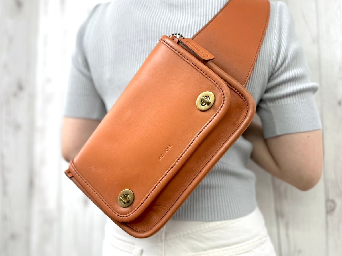 【ブランド】 COACH コーチ 【形】ボディバッグ ウエストポーチ 開閉ターンロック×ファスナー・外ポケット1・内ポケット2 【素材】レザー 【色】オレンジブラウン 【A4収納】不可 【サイズ】横約26×縦約17×幅約6×ショルダー最大約102センチ 【付属品】なし 【状態】 ⑨極美品 未使用品ではないのでスレ汚れなどあるかもしれませんが、素敵なバッグになります。 ※できる限り写真に載せておりますのでご参考ください。 ※※※状態の詳細※※※ ⑩新品・未使用 ⑨極美品 ⑧美品 ⑦一般的な使用感でも美品に近い ⑥一般的な使用感 ⑤多少使用感あり ④使用感あり ①~③ジャンク品・リペア必要 | ||