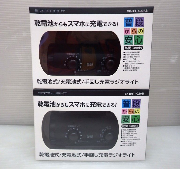 ★2個セット 星光商事 乾電池式/充電池式/ 手回し充電 ラジオライト 未使用 SKーBR1402AB ラジオ 懐中電灯 スターライト