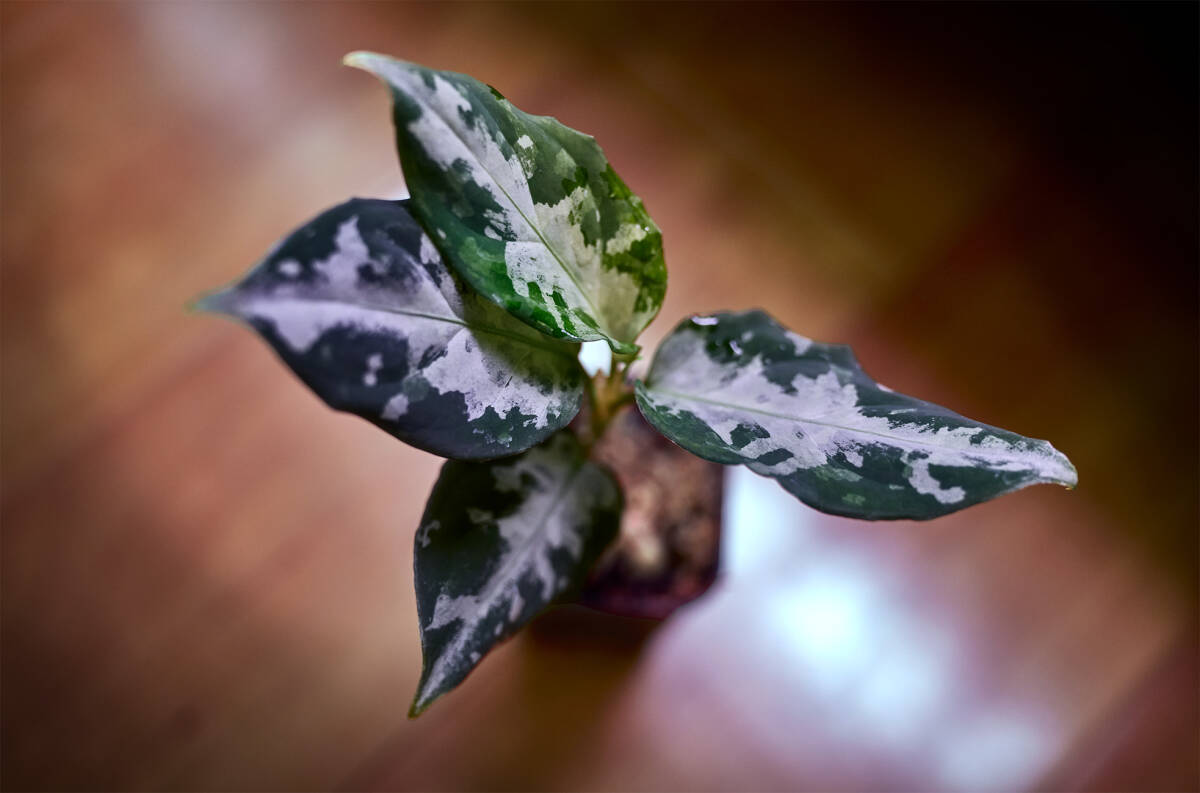 ・親株表現としては、葉の8~9割が白で覆い尽くされ、濃い緑と白のコントラストが美しい葉模様となっています。また、色味としては一見濃い緑と白のアルゲンタムに見えるのですが、白部分をよく見ると掠れが入っていたり、リアウ産のLA1119-03から受け継いだと思われる白の下に濃い緑と明る緑が隠れているのが特徴です。これをトリカラーと呼べるのかはわかりませんが、これらの特徴が通常のアルゲンタムより複雑かつ全体として非常に美しく感じさせてくれる表現となっています。