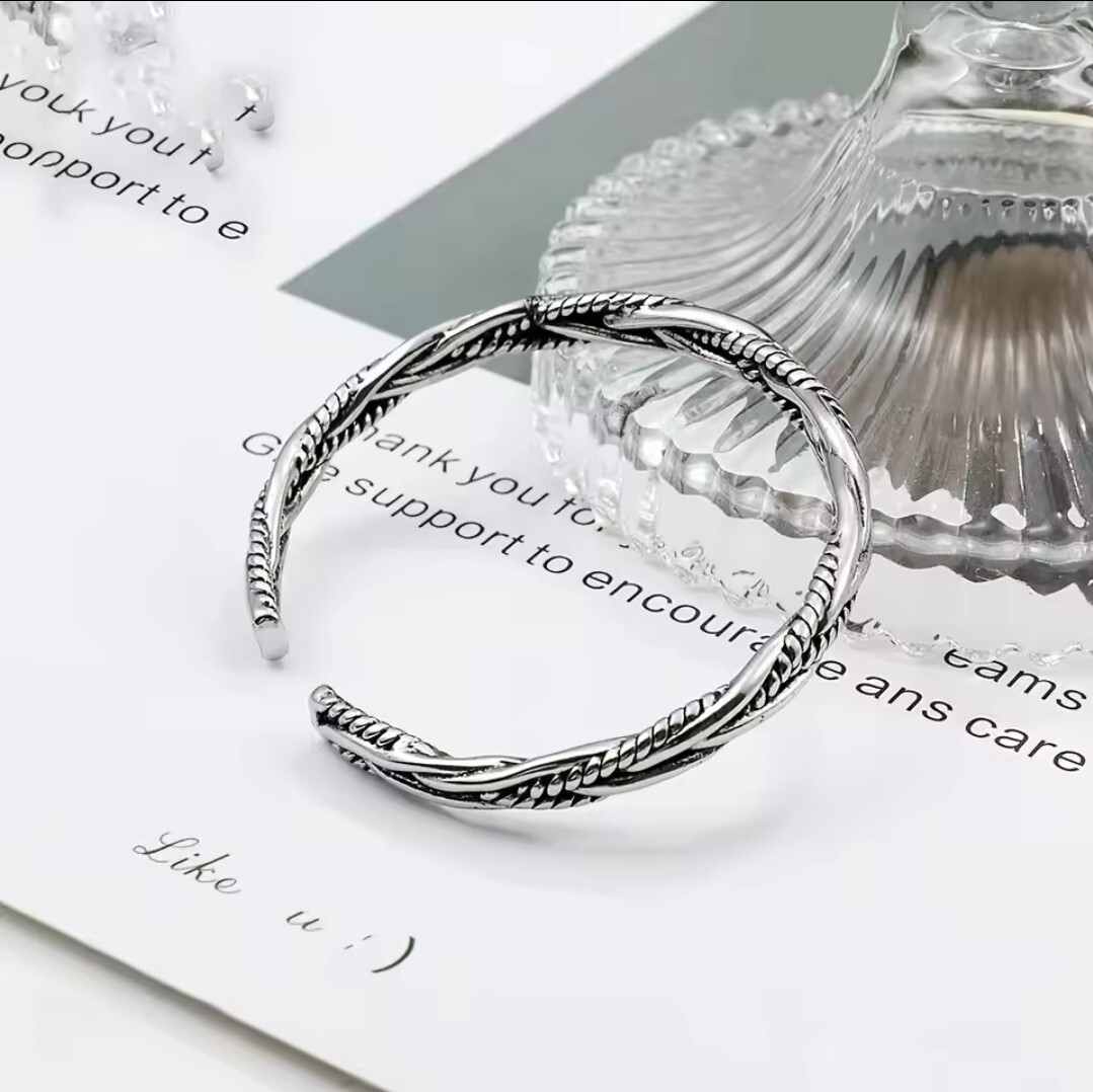 ヨーロッパとアメリカのヴィンテージスタイルからインスパイアされた、ユニークなシルバーツイストブレスレットです。精巧な職人技が光るデザインは、手元に洗練されたアクセントを加えてくれます。