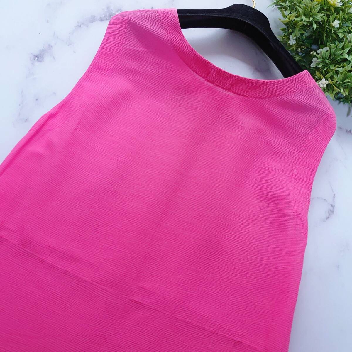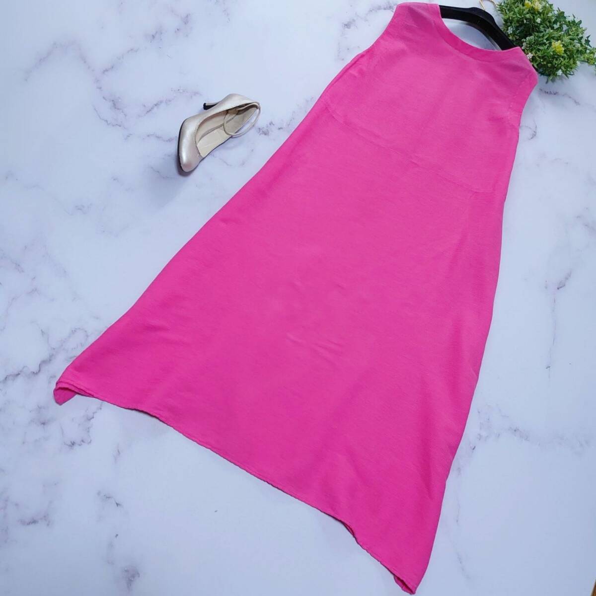 Plantation プランテーション YOORYUU ヨーリュー ノースリーブワンピース ロング マキシ フレア Aライン コットン 楊柳 綿100% シワ加工 クレープ加工 ピンク レディース