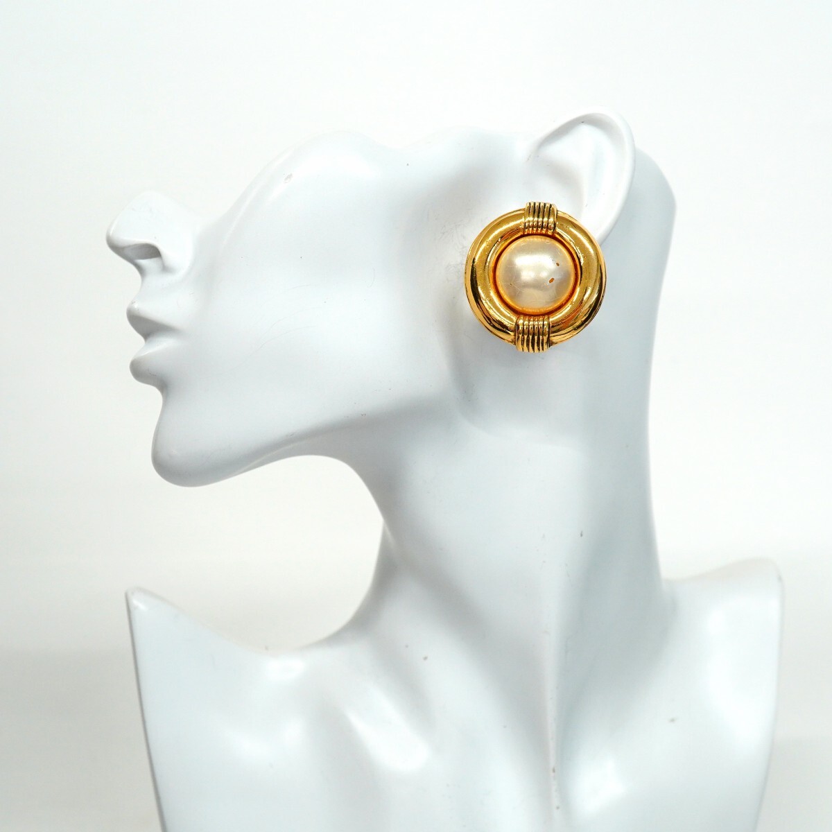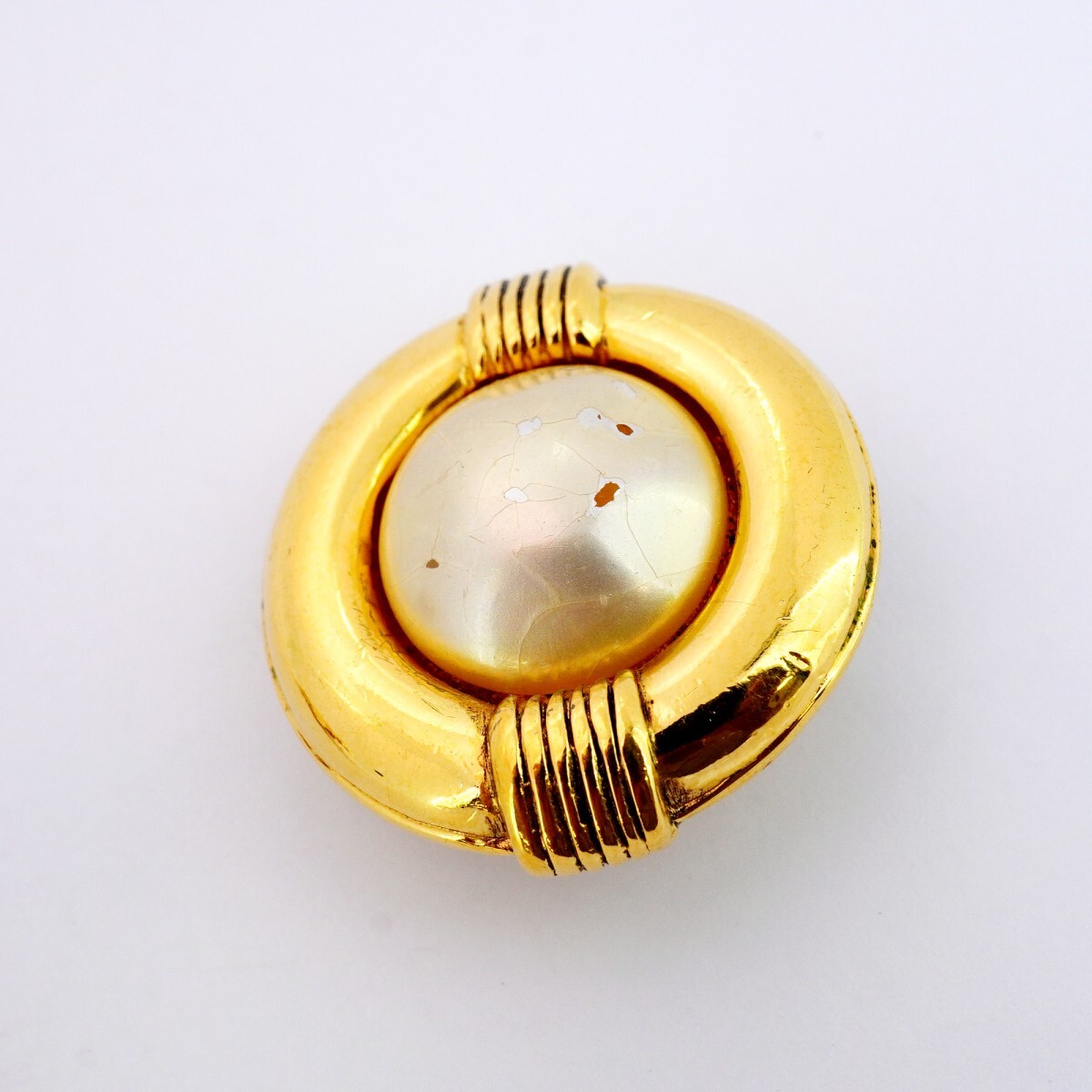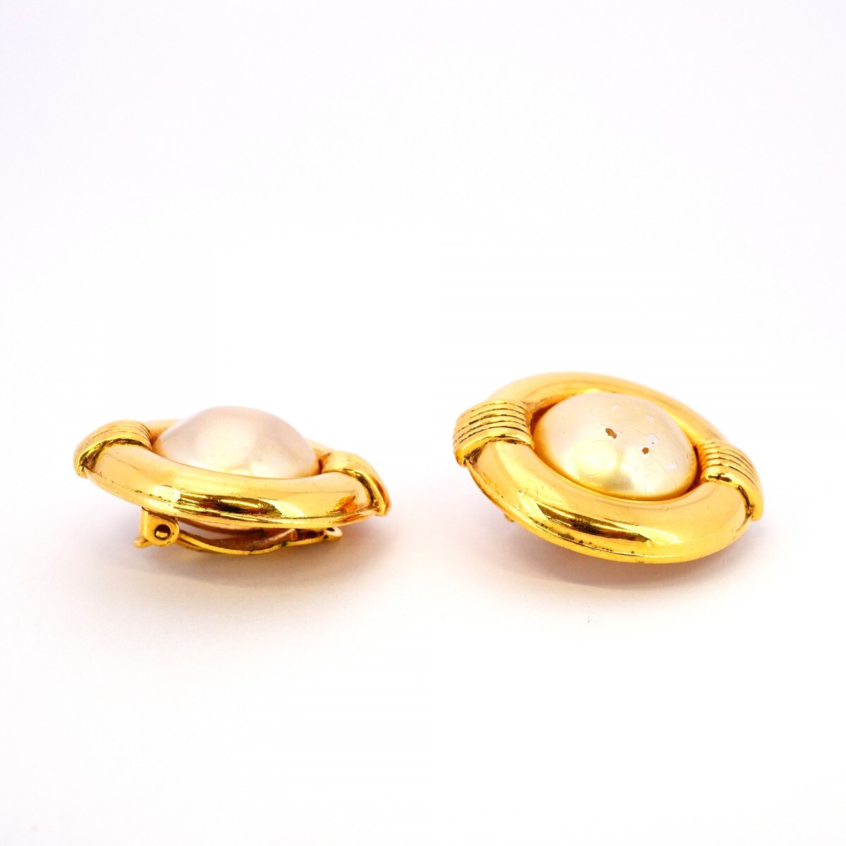 【5jib0763】シャネル イヤリング ヴィンテージ 丸型 サークル GPメッキ フェイクパール ゴールド【中古】レディース