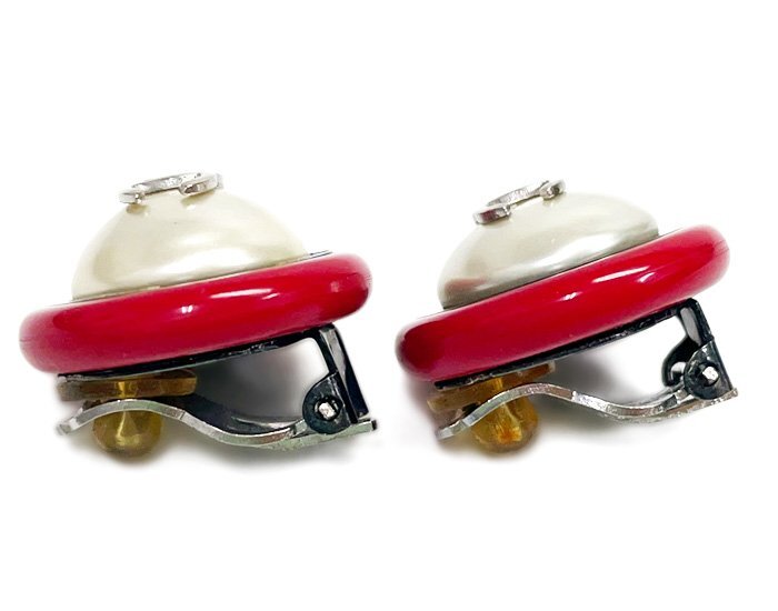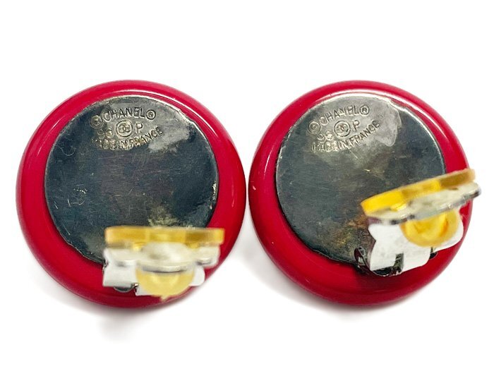 CHANEL シャネル 96P フェイクパール イヤリング 両耳 クリップ式 ラウンド 丸形 ココマーク レッド×ブラック×シルバー ヴィンテージ