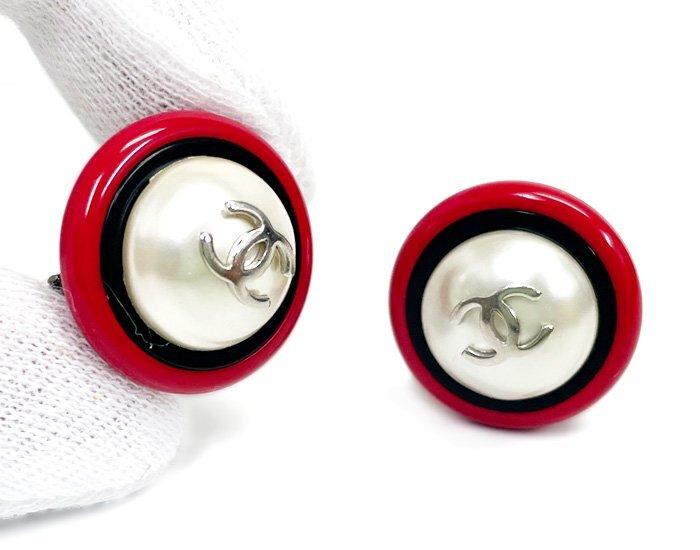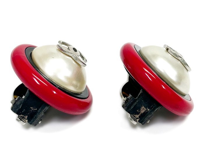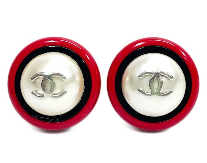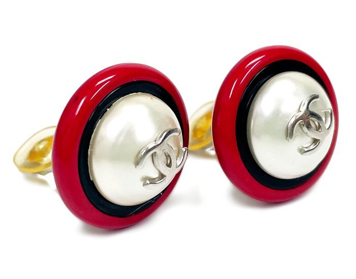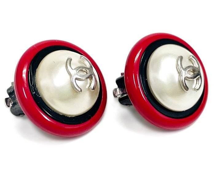 商品詳細 【 商品名 】CHANEL シャネル 96P フェイクパール イヤリング 両耳 クリップ式 ラウンド 丸形 ココマーク レッド×ブラック×シルバー ヴィンテージ