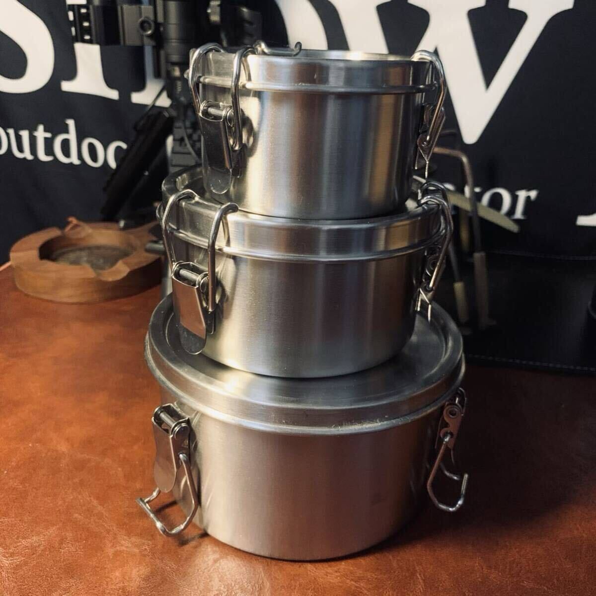 キャンプ用 超高品質 密閉缶 保存容器 キャンプ携帯 3点セット ステンレス鋼製 アウドトア 野外登山 250ml 480ml 780ml