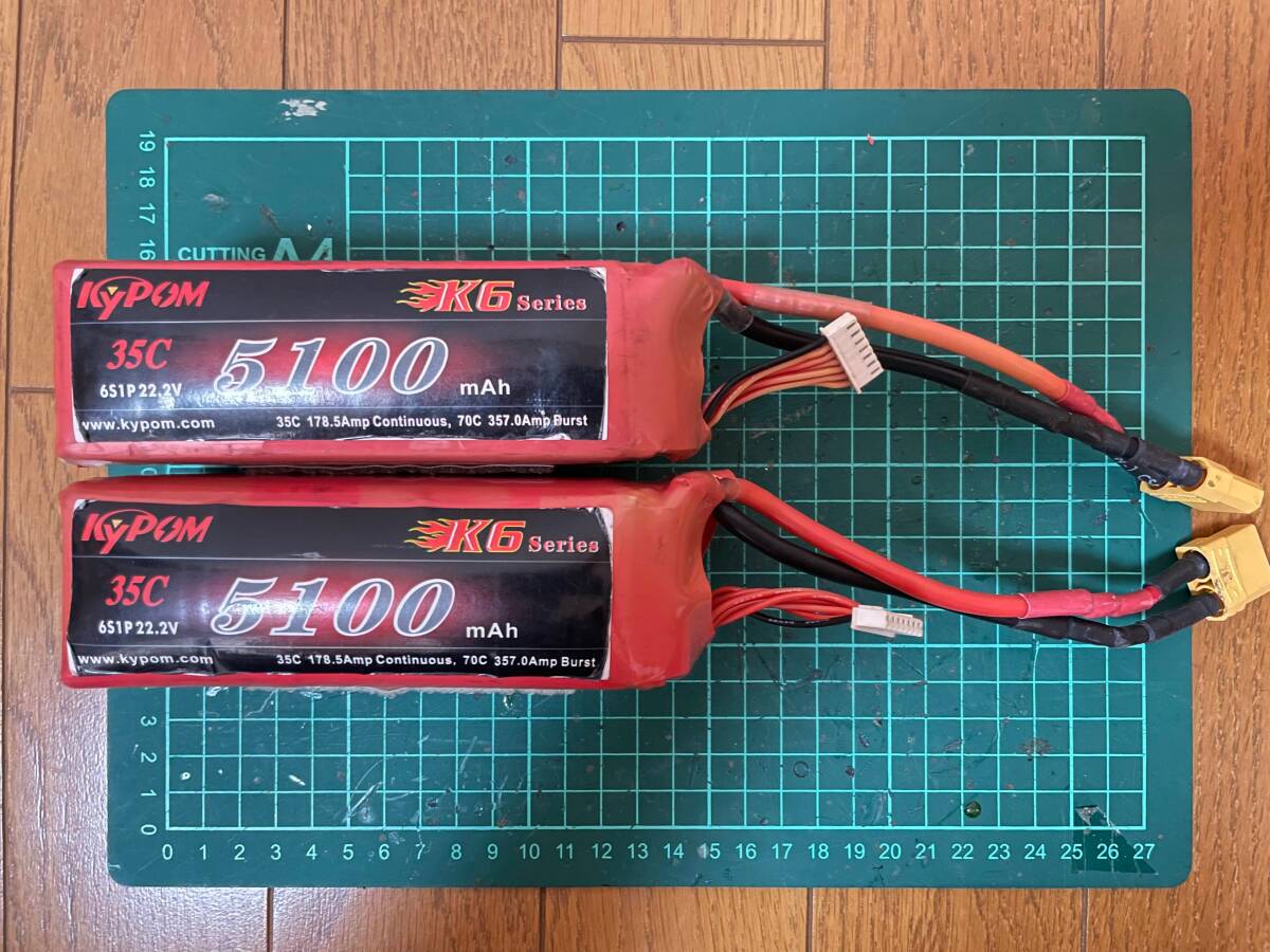 【ジャンク】リポバッテリー KYPOM K6 22.2V 5100mA 35C-70C 2本