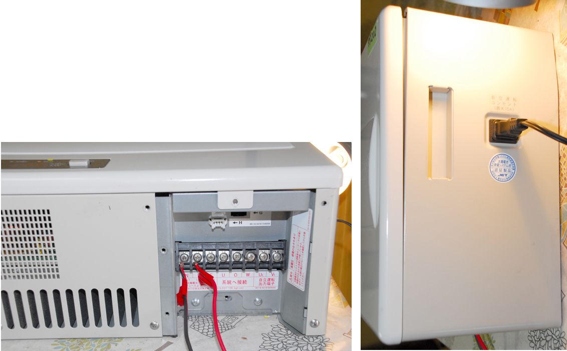 ●当方での作動テストは、「連系運転」はできませんので、掲載写真の通り太陽光パネルに接続し、