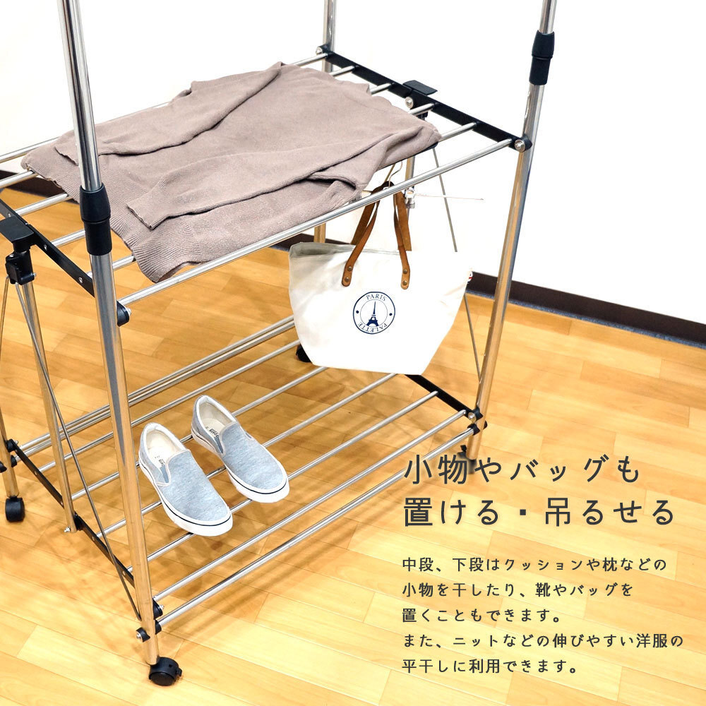 ★折り畳み物干し スタンド キャスター付き ステンレス パイプハンガー コンパクト ポール 室内 部屋干し 室内物干し 伸縮