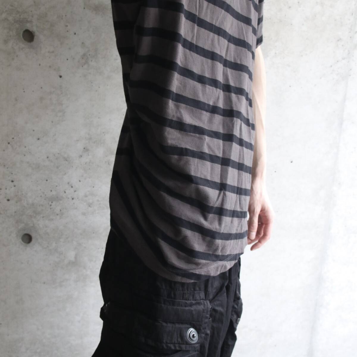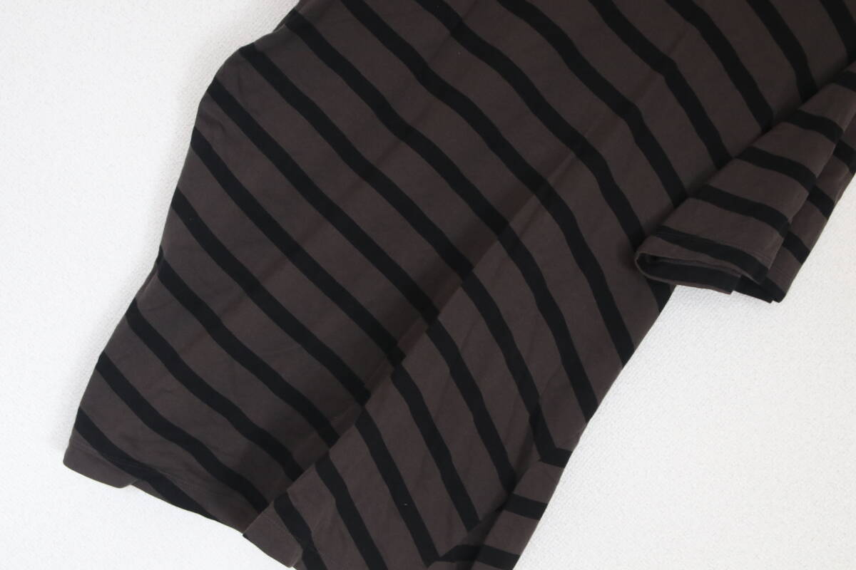 右脇に向かって湾曲させ自然なドレープの出るシルエットのボーダーTシャツです。