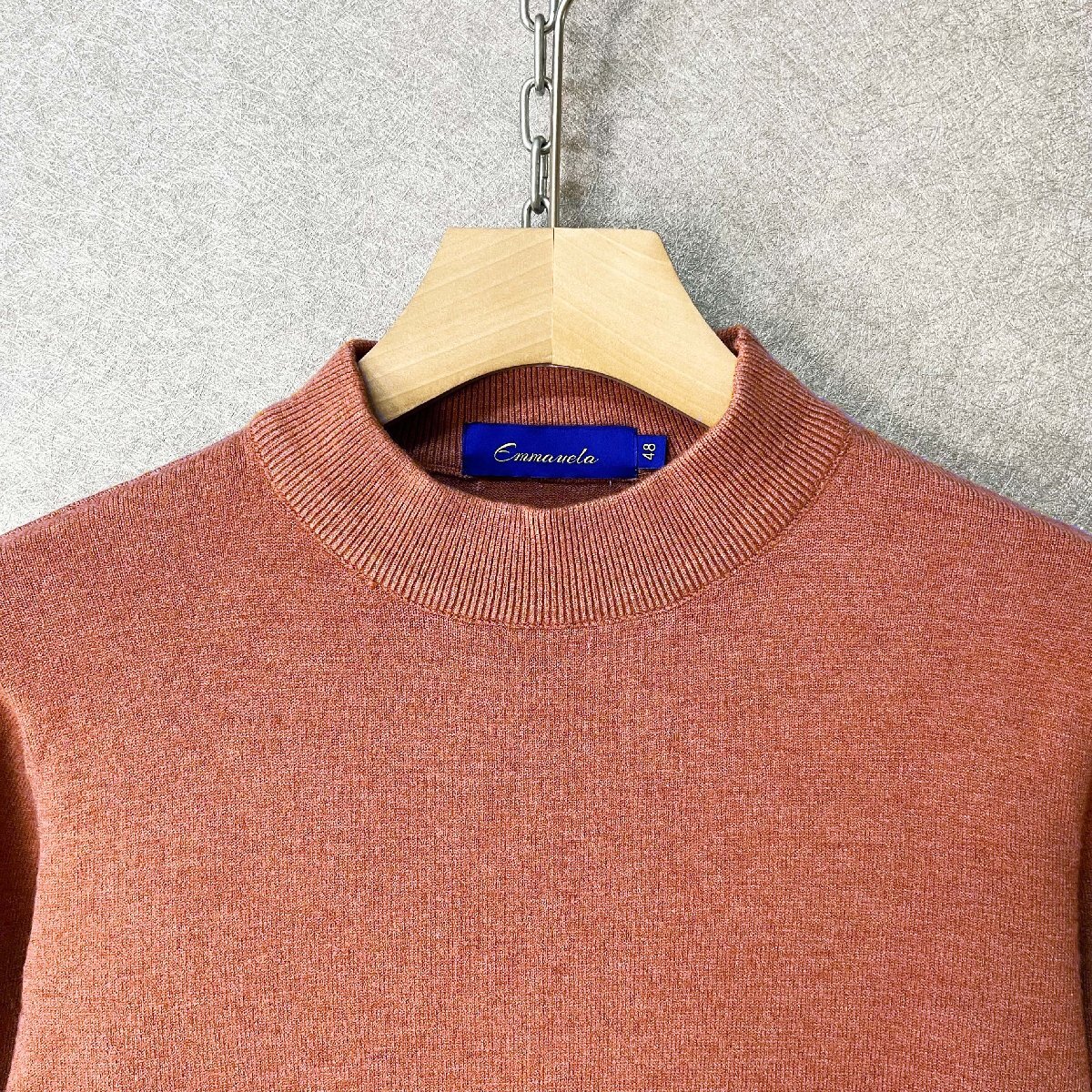 個性・セーター 定価4万◆Emmauela・イタリア・ミラノ発◆ウール混 保温 伸縮性 ニット 無地 クールネック カットソー インナー 長袖 日常 L/48サイズ