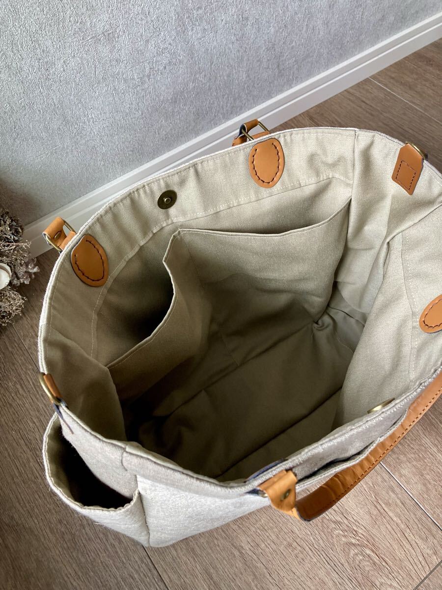 両サイドと後ろ面、底部分はアクセントにモカの帆布に切り替えてみました。