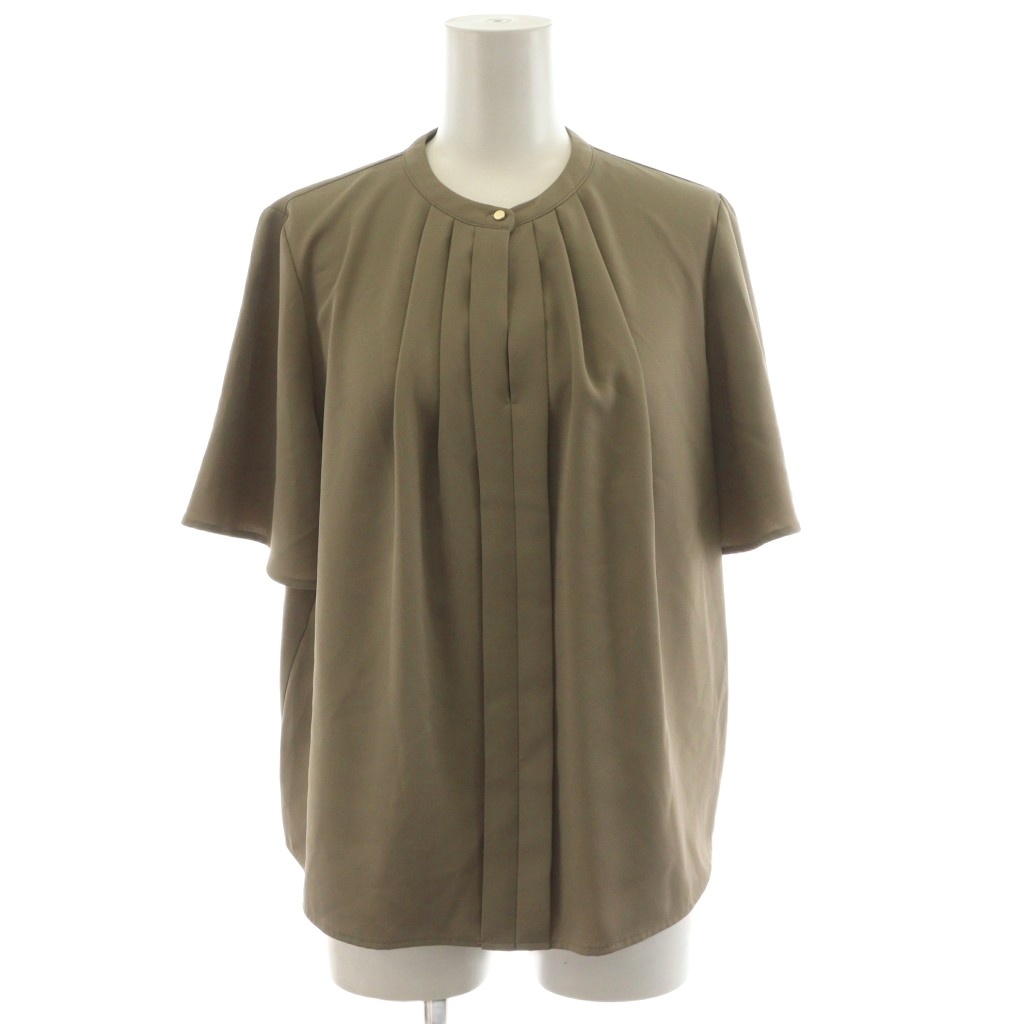 ナチュラルビューティーベーシック NATURAL BEAUTY BASIC 25SS シャツ ブラウス 半袖 ピンタック ノーカラー M グレー