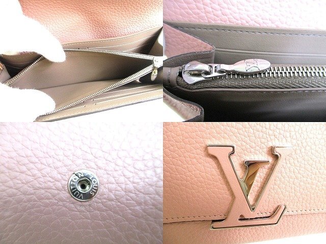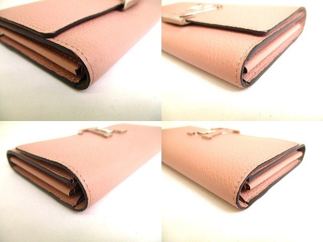 9854 【未使用保管品】 LOUIS VUITTON ルイヴィトン トリヨンレザー ポルトフォイユ カプシーヌ 2つ折り 長財布 ロングウォレット 未使用保管品の為とても綺麗なお品です(新品同様の状態ですが、未開封の新品ではないので一見わかりにくい些細な傷や汚れは御了承くださいませ。) 【ブランド】LOUIS VUITTON 【カラー】マグノリア(ライトピンク系) 【素材】トリヨンレザー 【サイズ】幅:約20cm 高さ:11cm 奥行き:約2.5cm ※あくまでも実寸なので多少の誤差はあるかもしれませんのでご了承ください。 【参考定価】190,300円 【製造刻印】MI4156 【型番】M61250 【機能】札入れ×2、小銭入れ×1、カード入れ×12、ポケット×1 【付属品】取扱説明書、保存袋 【商品状態 】A-B ランク |