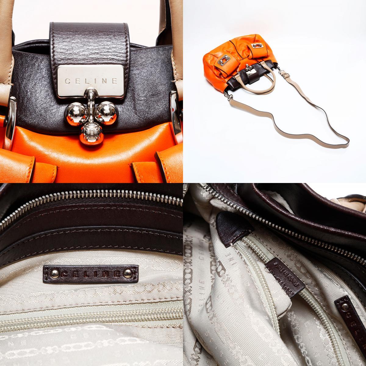 極美品 CELINE レザー ハンドバッグ オレンジ