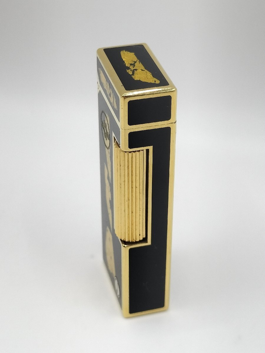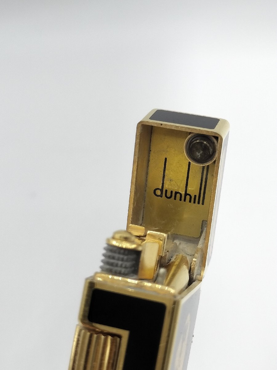 Dunhill ダンヒル ローラー式 ガスライター スクエア 金箔 ブラック ゴールド dロゴ スイス製 喫煙具 煙草グッズ 現状品 J1643-5