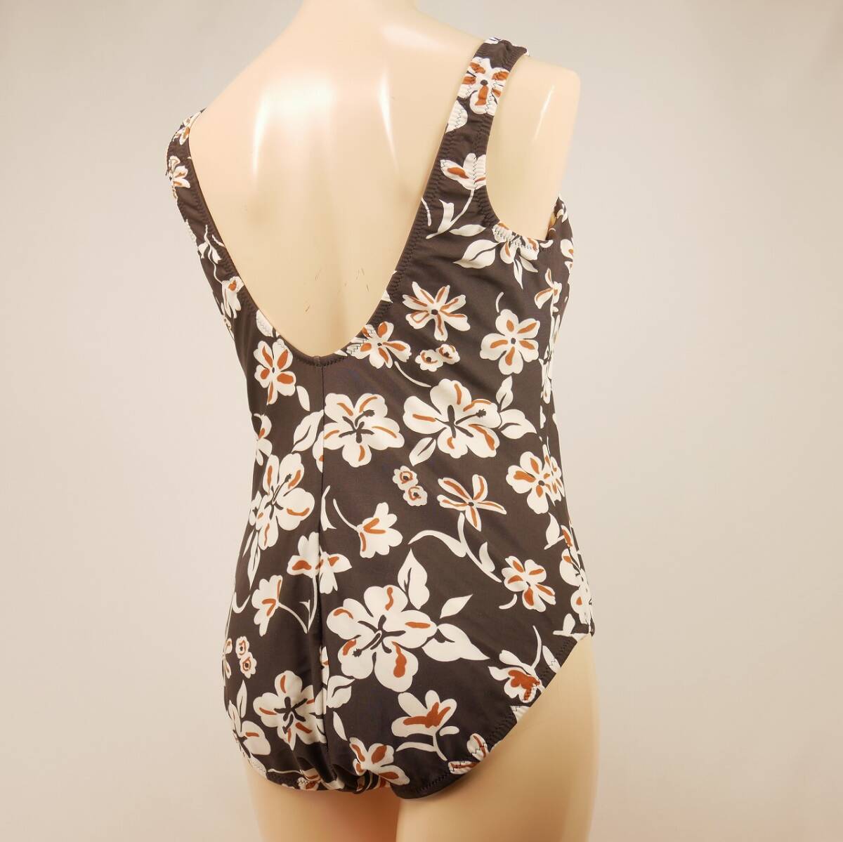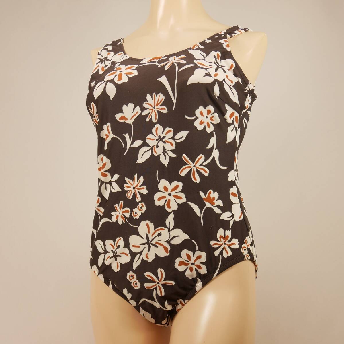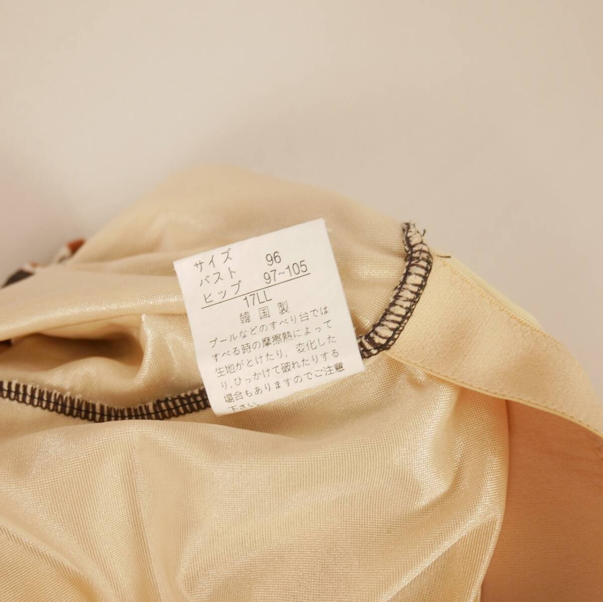 7990 美品 レディース水着 花柄プリント ワンピース水着 17LLサイズ ブラウン系 匿名配送