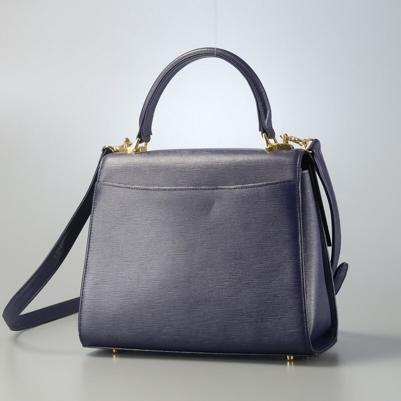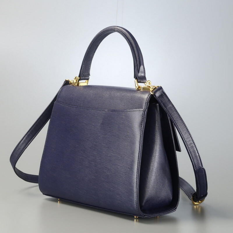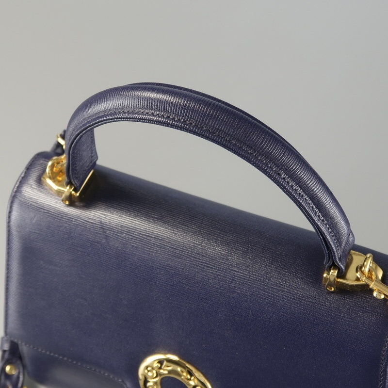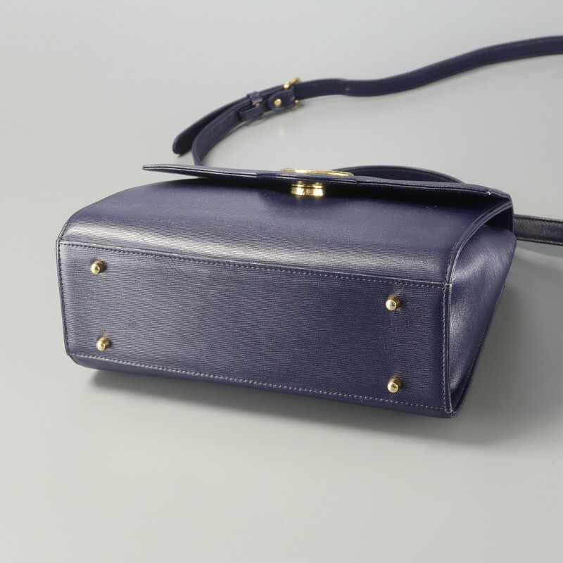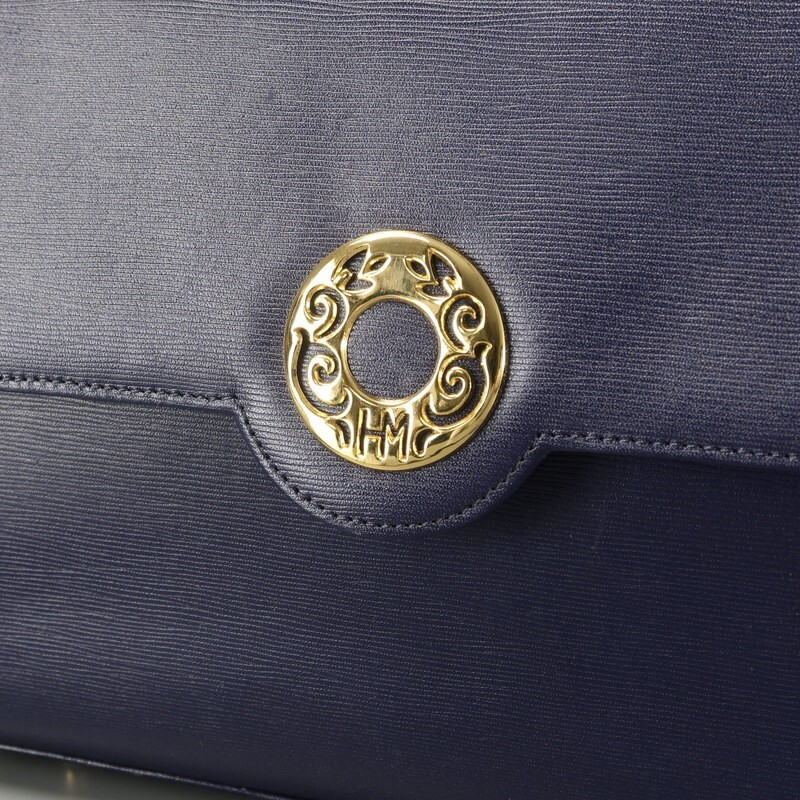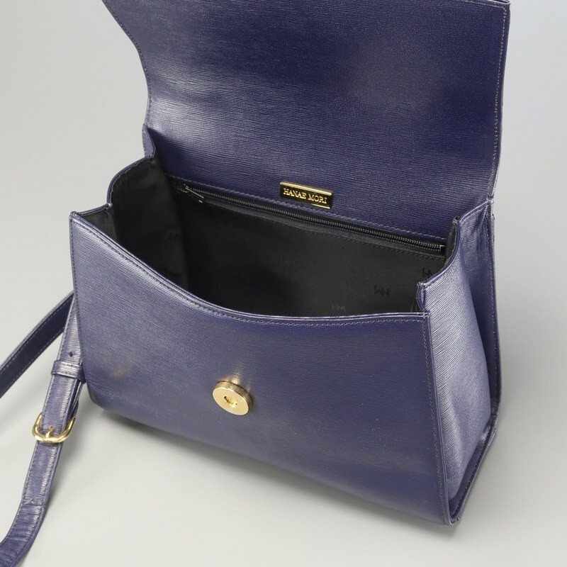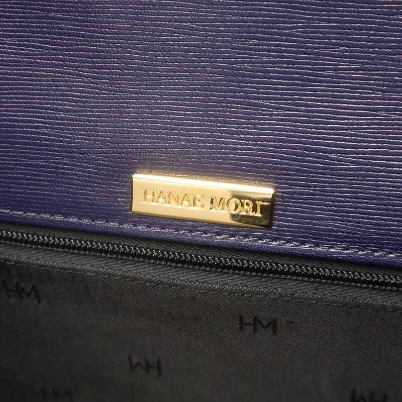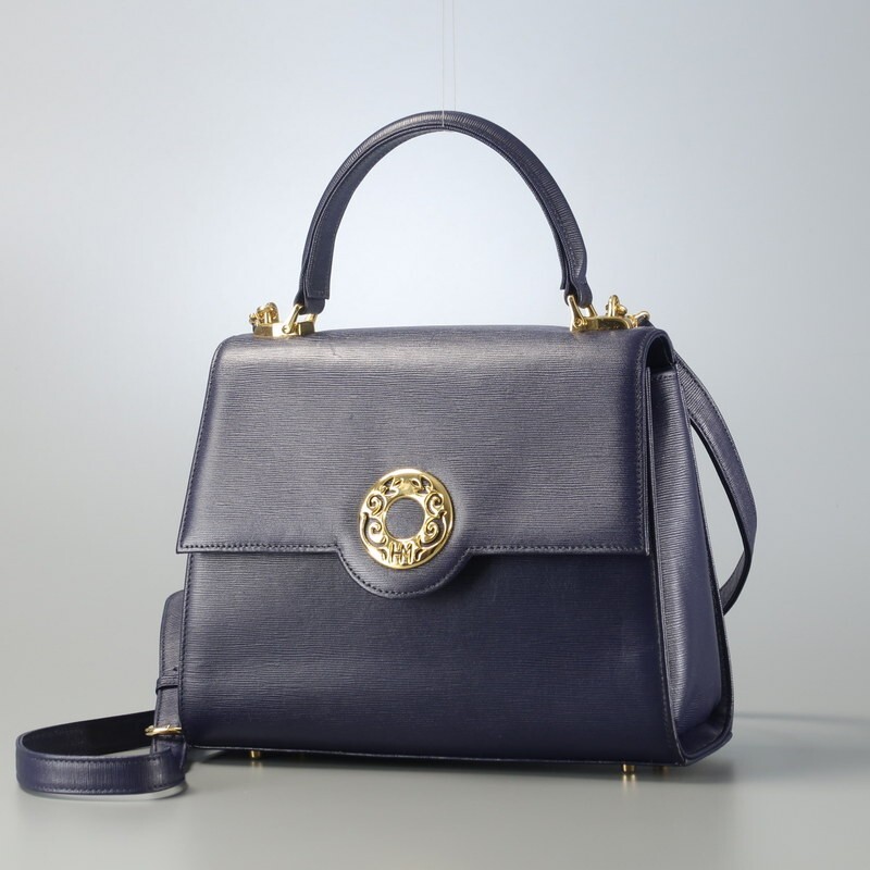 | MI1604■HANAE MORI ハナエモリ レザー ハンドバッグ ショルダーバッグ 手提げ 斜め掛け 2way 鞄 ゴールド金具 ネイビー系 | |||