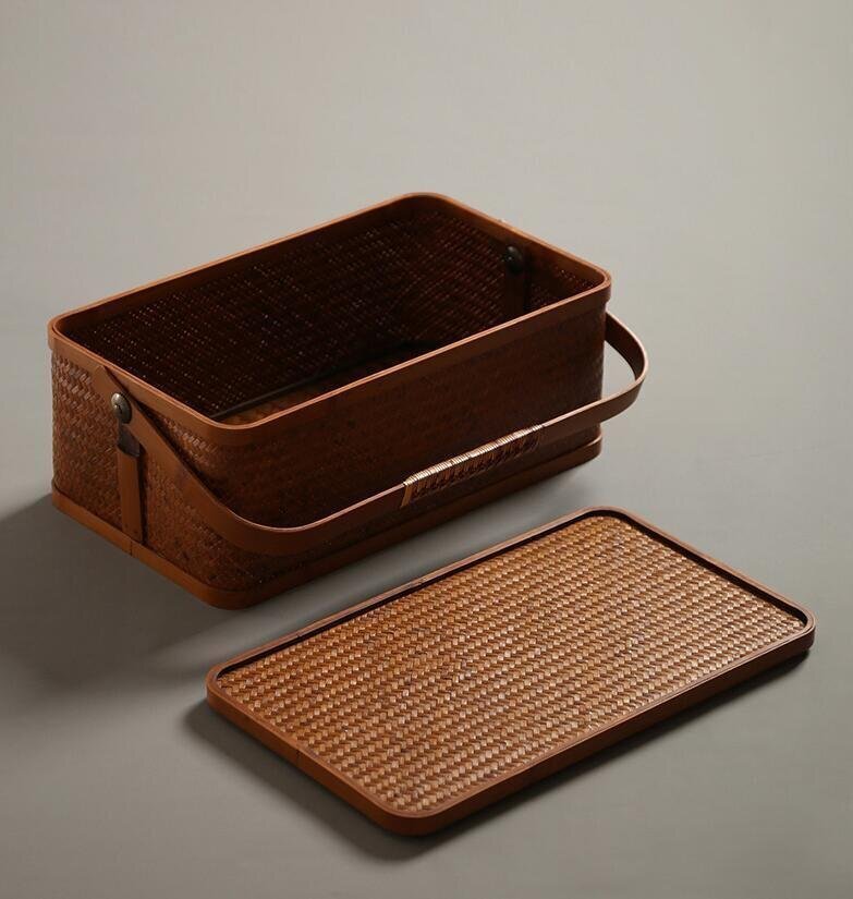 高品質 手作り竹のバスケット 収納 茶箱 収納ボックス 茶器 茶道具 工芸品