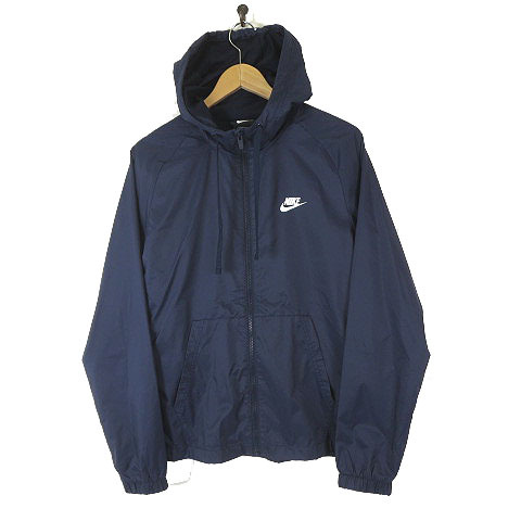 ナイキ NIKE ウーブン フーディ ジャケット ナイロン ウインドブレーカー 裏メッシュ ロゴ ジップアップ M 紺 ネイビー 国内正規品 メンズ