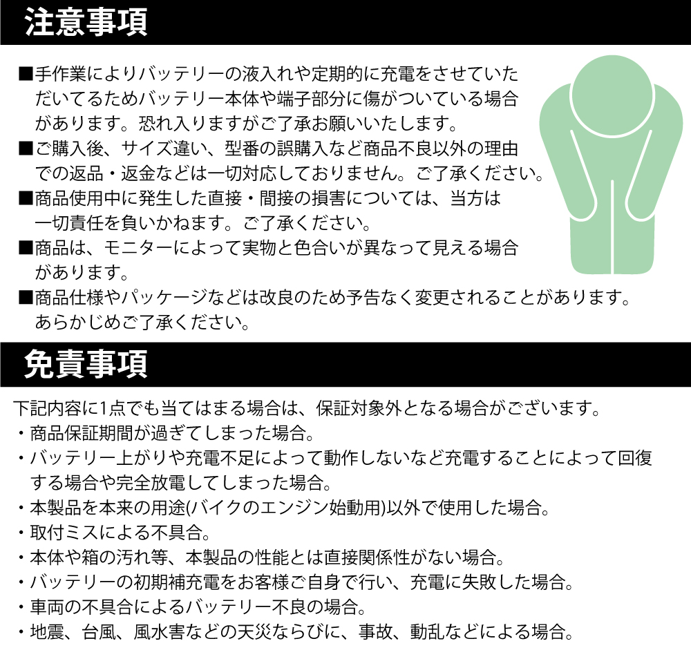 | 初期不良:商品発送より1か月※一部対象外(2018.1.17改正) ※お問い合わせをいただき、商品に不具合の可能性がある場合、通常商品到着後1か月以内の送料は当社負担で交換いたします。 1か月以降の送料はご返送いただく場合を含め全額お客様負担にてご対応いたします。交換品は不良部品のみとなります。 ※お問い合わせ頂き次第順次対応とさせて頂きます。メールにてお名前・お電話番号・受注番号・不具合の症状を明記の上お問い合わせ下さい。土日祝日に頂いたお問い合わせは、翌営業日以降のご返信となります。 ※商品の保証期間は商品によって異なります。また、商品を交換した場合でも保証期間が更新されることはございません。 ※修理・お取り付けの際に生じる脱着工賃やその他諸費用につきましては、弊社で一切責任を負いかねます。 ※取り付け作業中の商品の不具合や破損、車両の破損などは保証対象外となります。 お買い物ガイドの内容にご同意頂いた方のみご購入をお願い致します。 |
