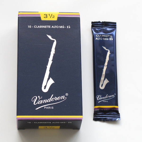 バンドレンのアルトクラリネット用リード 「トラディショナル(青箱)」10枚セットの品から、1枚(個包装未開封)を分売します。 硬さは「3 1/2」。