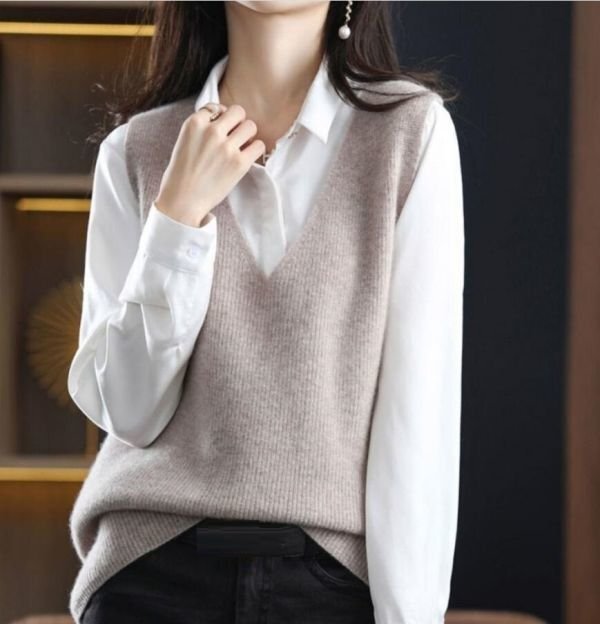 秋冬上質 おしゃれ Vネック ドルマン袖 ミンクカシミヤ混 袖なし ニットセーター ニットベスト★黄/XLサイズ