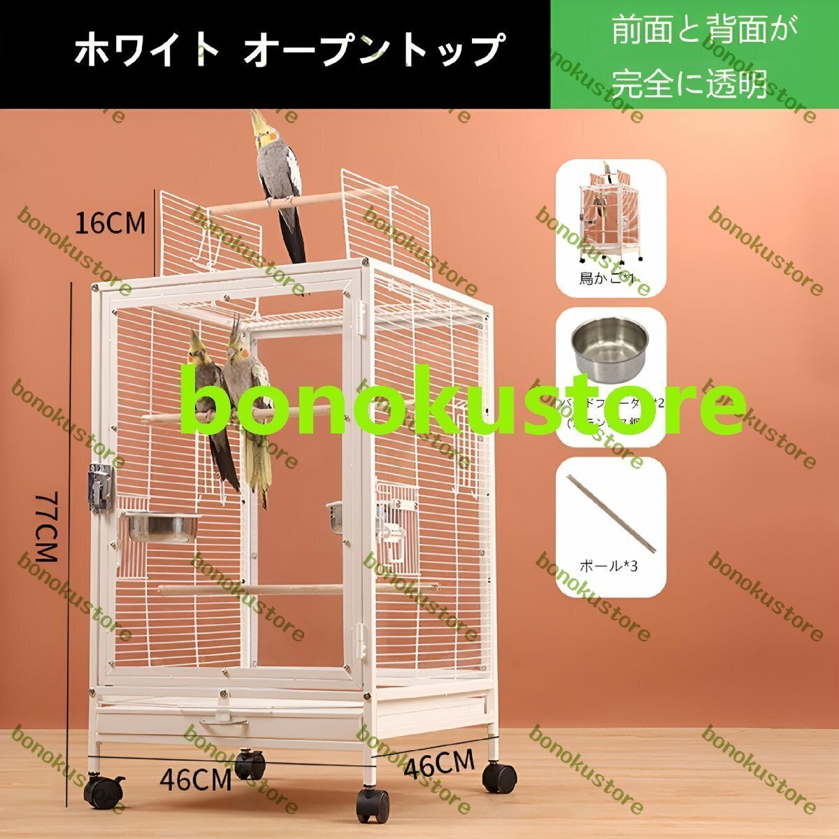 【製品仕様】サイズ:45*45*77cm。広々としたスペースを持つこの鳥かごは、鳥愛好家のために設計された高品質な製品です。大型の家庭用モデルであり、スペースが十分にあり、セキセイインコ、ジュウシマツ、メジロ、パグ、ヒバリなど、さまざまな鳥に適しています。 【高品質