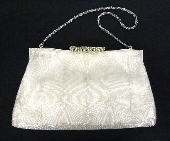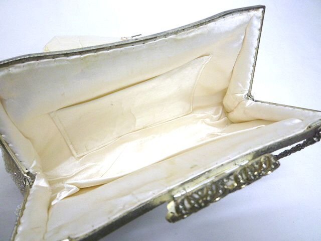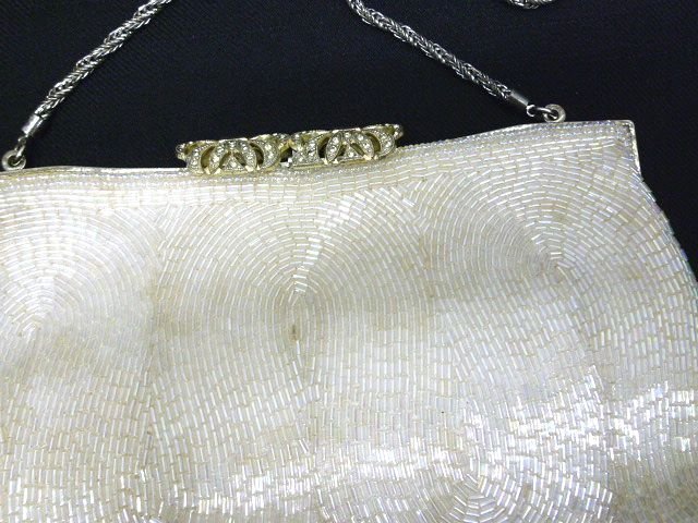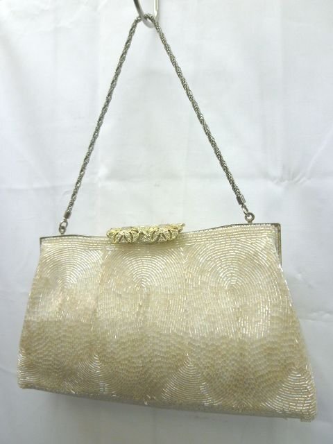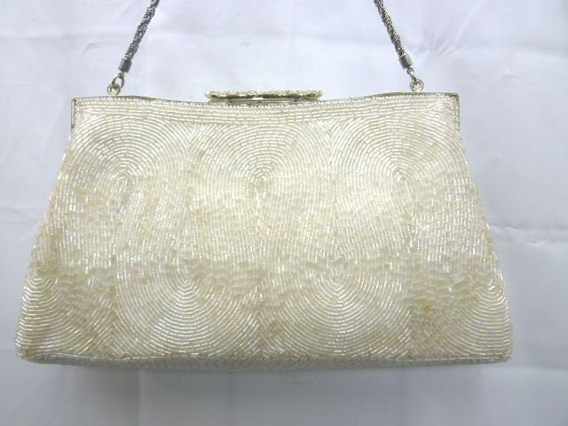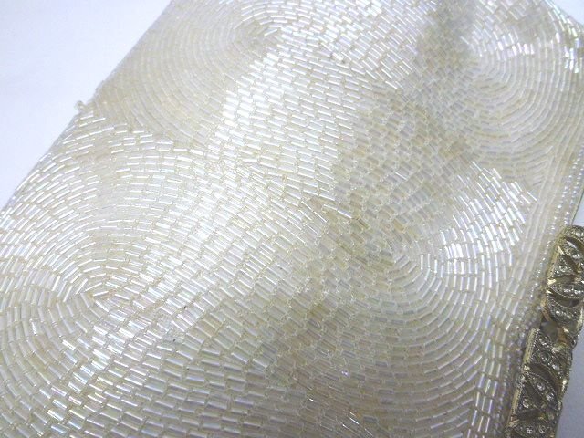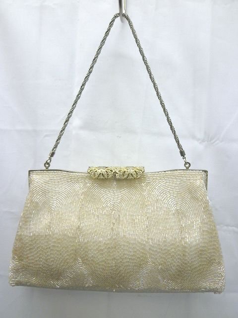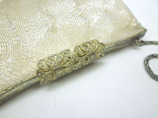 ★ヴィンテージ◎ビーズ装飾 フォーマル パーティバッグ クラッチバッグ ホワイト チェーンバッグ【中古】K240406006