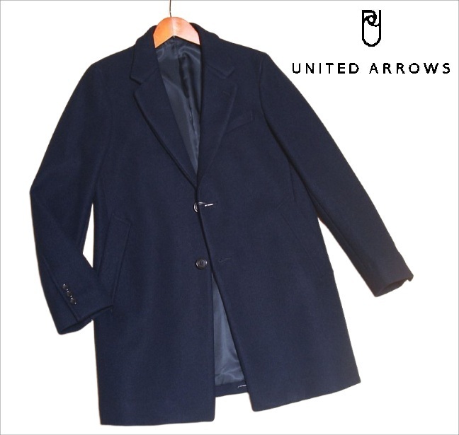 新品!! ユナイテッドアローズ ニット メルトン チェスターコート ネイビー (S) ☆ UNITED ARROWS メンズ ビジネス 裏地有 紺系 定価1.4万★