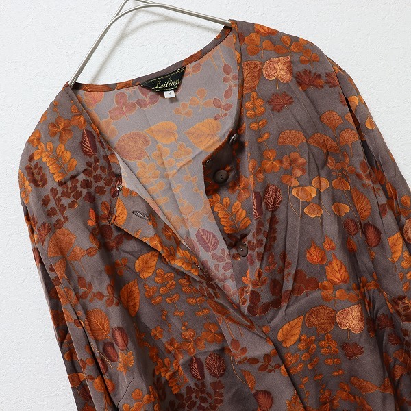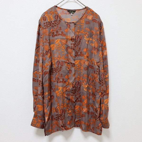 商品名 | レリアン Leilian ヴィンテージ ノーカラー シャツ ブラウス トップス 総柄 [a964942n] |