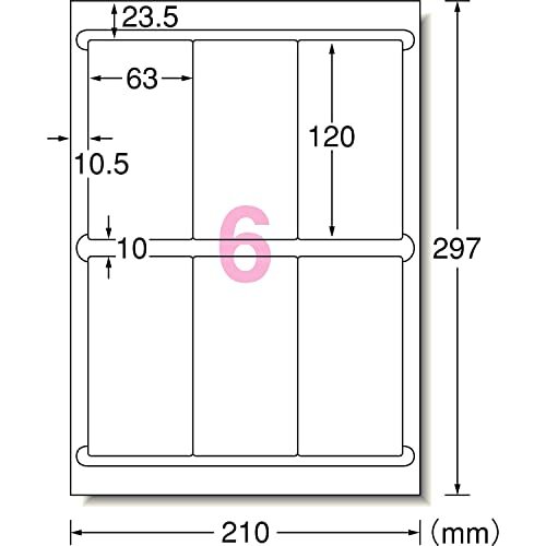・A4 6面 四辺余白付 角丸/シートサイズ:A4判 (210mm×297mm)/ラベルサイズ:63mm×120mm(3列×2段)