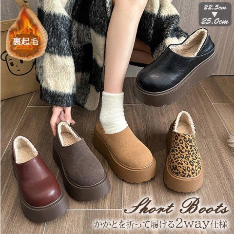 ・大人の抜け感を演出してくれるムートン調&レザー調ショートブーツ。