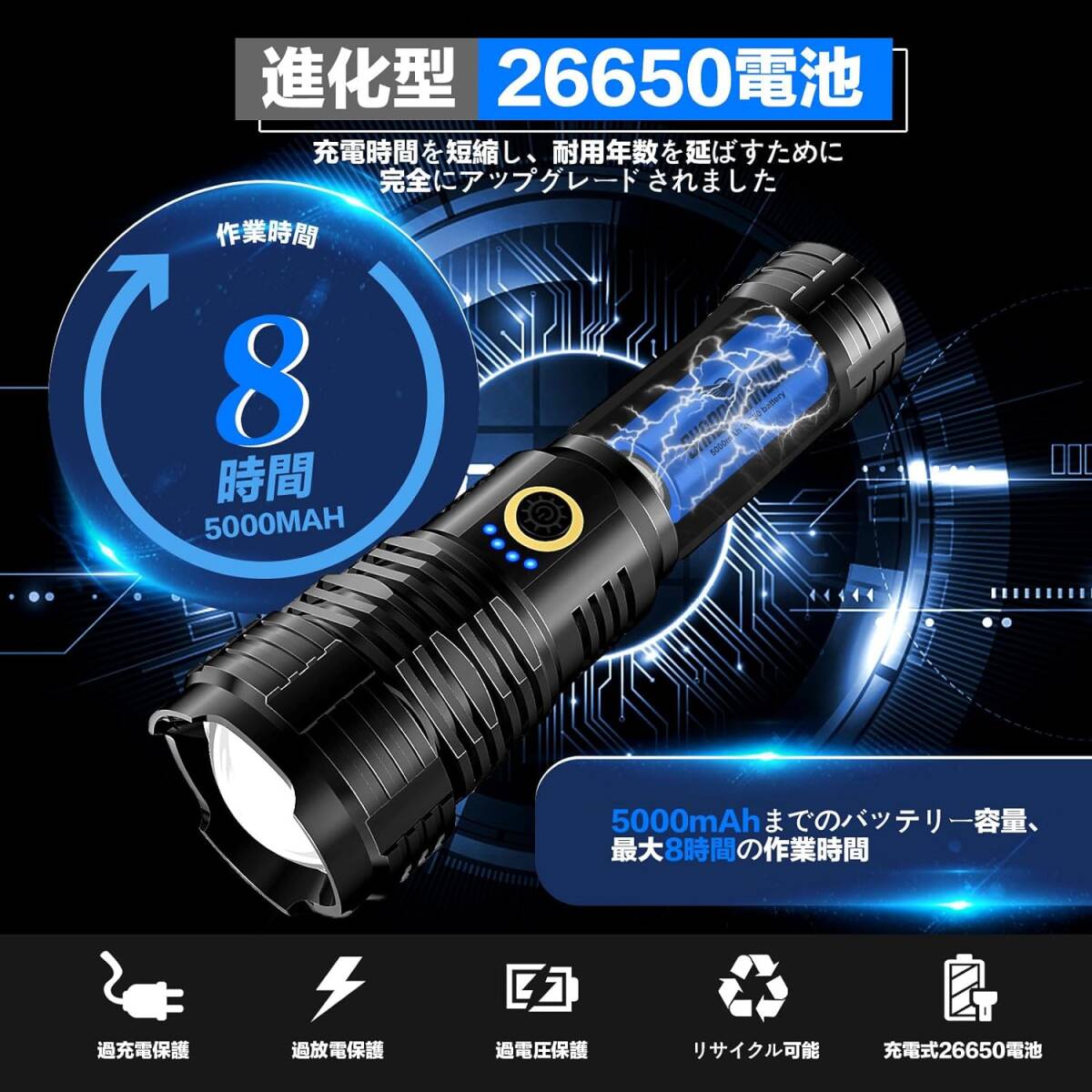 ● 商品名:充電式懐中電灯 ● モデル:1915B ● サイズ:16.8CM * 5CM * 3.8CM ● 電球タイプ:XHP70 LED ● 重量:275g ● バッテリー:1 *26650型リチウムイオン電池 ● 本体材質:アルミ合金 ● スイッチ:プッシュボタン式 ● ズームモデル:伸縮ズーム ● 5モード:100%/70%/50%/フラッシュ/SOS(シャットダウンするための任意のギアの長押し) ● 充電方法:Type-C USB充電5V 1A ● 充電時間:6〜10時間 ● 使用時間:2〜10時間 ● パッケージ内容: 懐中電灯*1 Type-C USBケーブル*1 バッテリーケース*1 26650型リチウムイオン電池*1 テールロープ*1 製品の使用方法 1.初めて製品を使用するときは、まずバッテリーの透明な絶縁フィルムをはがし、バッテリーが完全に充電されていることを確認し、懐中電灯を正しい方向に取り付けてください。【プラスを内側(ランプの側)、マイナスを外側(テールの側)にしてください】 2.懐中電灯を使用するときは、懐中電灯の電圧と電池の要件に応じて、回路基板が焼損するのを防ぐために無差別に使用しないでください。 異なるモデルと電圧のバッテリーを同時に使用しないでください。 新旧の電池を混在させることはできません。 3.使用中、懐中電灯の明るさが大幅に変化した場合は、懐中電灯をオフにして、バッテリーが過放電されないようにして、適時に充電してください。バッテリーの防水、防湿、落下防止などに注意してください。充電時の充電器の充電速度に応じて、インジケーターライトが変わったら、時間内に取り外し、過充電しないでください。 4.長期間ご使用にならない場合は、化学腐食を防ぐために、バッテリーを完全に充電してから取り出して保管し、2ヶ月に一度充電と放電を行う必要があります。 5.ランプカップの内壁は清潔に保ってください。 手や硬いもので拭かないでください。 レンズの指紋を取り除くには、綿棒とレンズクリーナーでそっと拭きます。 6.懐中電灯への損傷を避けるために、日光、水、化学物質、腐食性ガスに長時間触れないようにしてください。 7.回路基板を損傷しないように、専門家以外の人は自分で懐中電灯を分解しないでください。 | ||